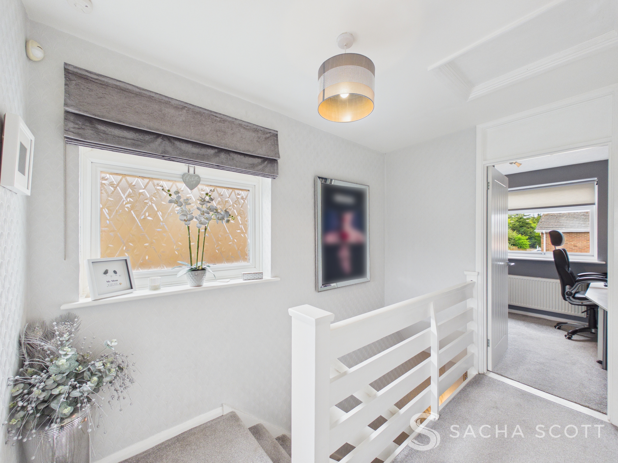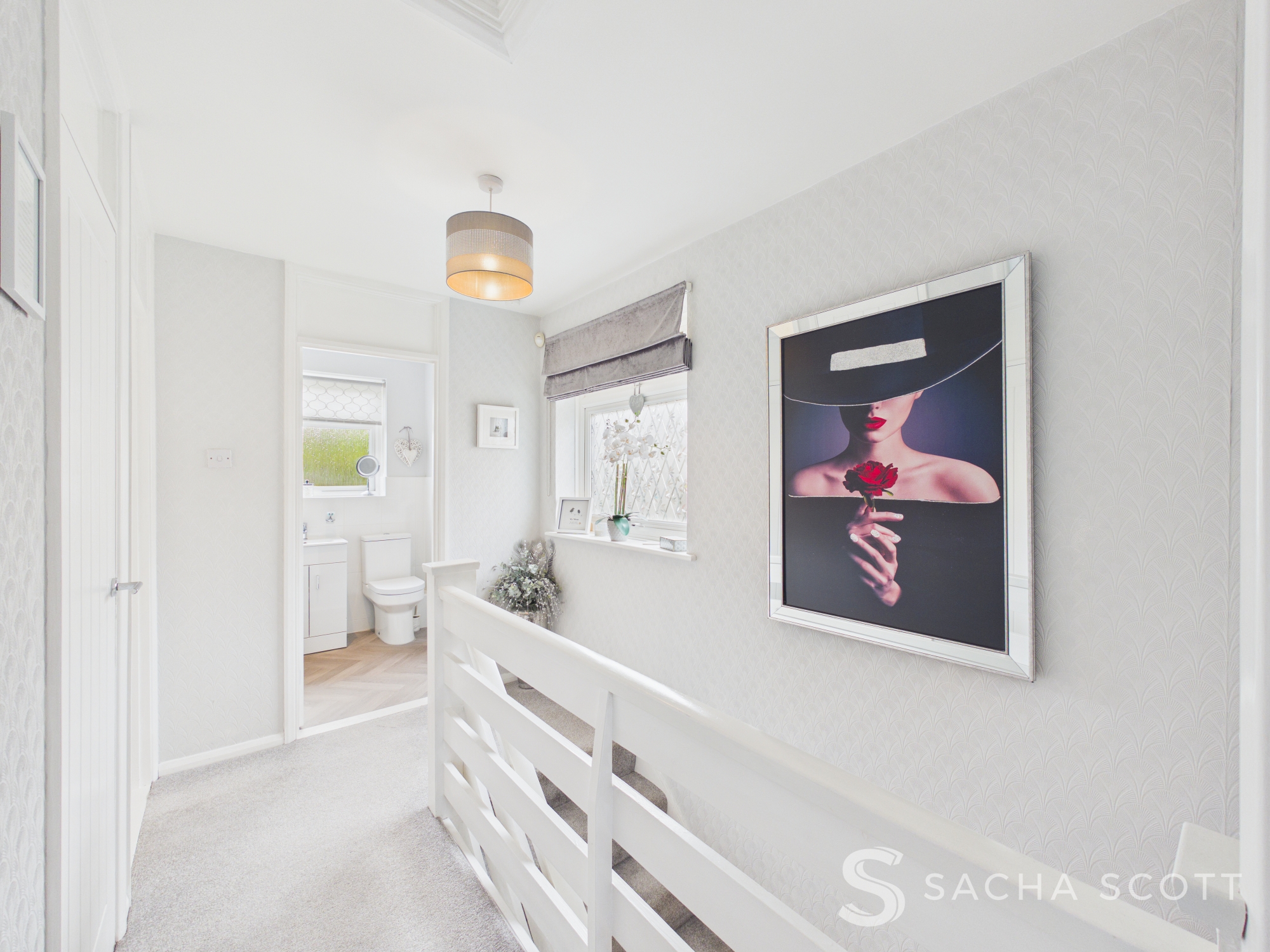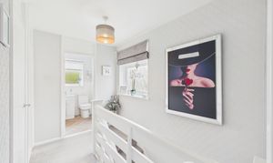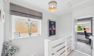 Bright and beautifully presented, the landing hall area benefits from good natural light from a large window to the side and offers access to a storage cupboard and the loft (light, insulated and part boarded).