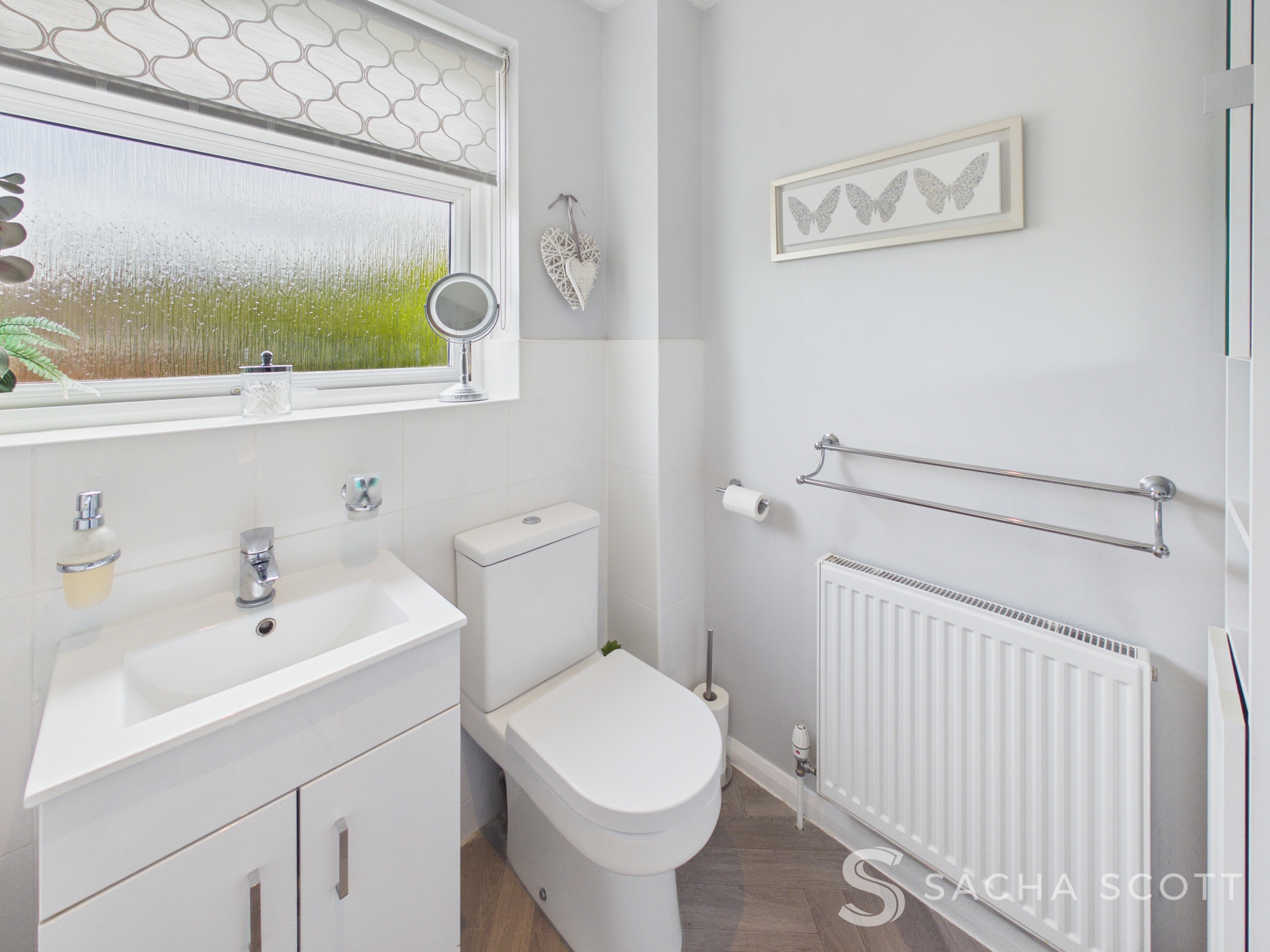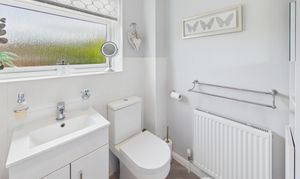 Located off of the main entrance hall, this handy guest WC is neutrally presented and offers a sink, toilet and radiator.