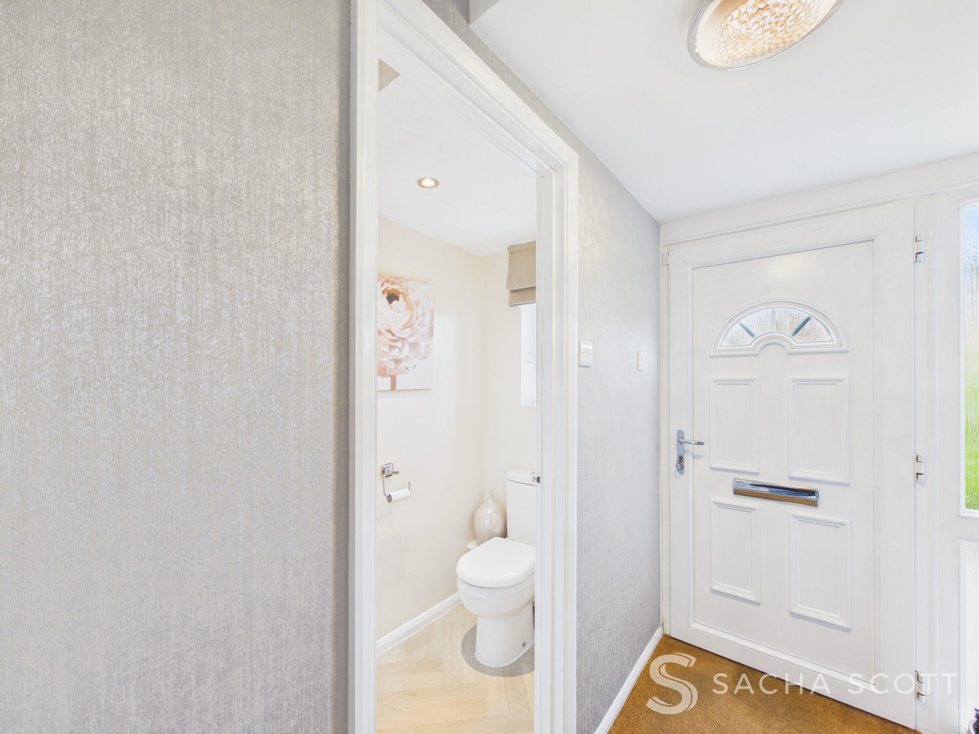 The entrance porch offers room for storage/bench and access to the guest WC.