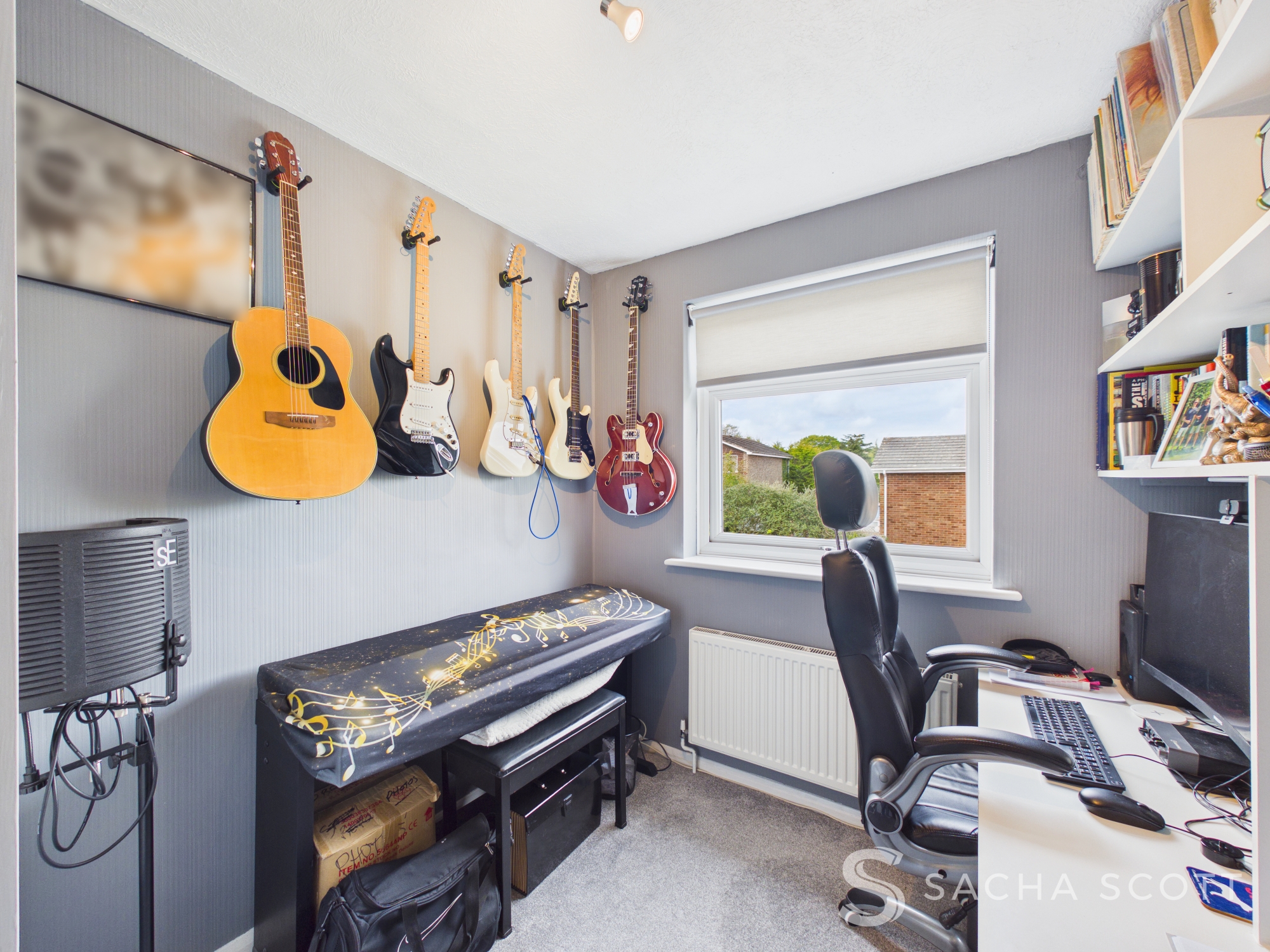 Currently used as a study/music room, bedroom 3 is a standard single that would accommodate a single bed and required furniture. Overlooking the front of this fabulous family home, the room is bright and benefits from modern decor and a fitted desk and storage.