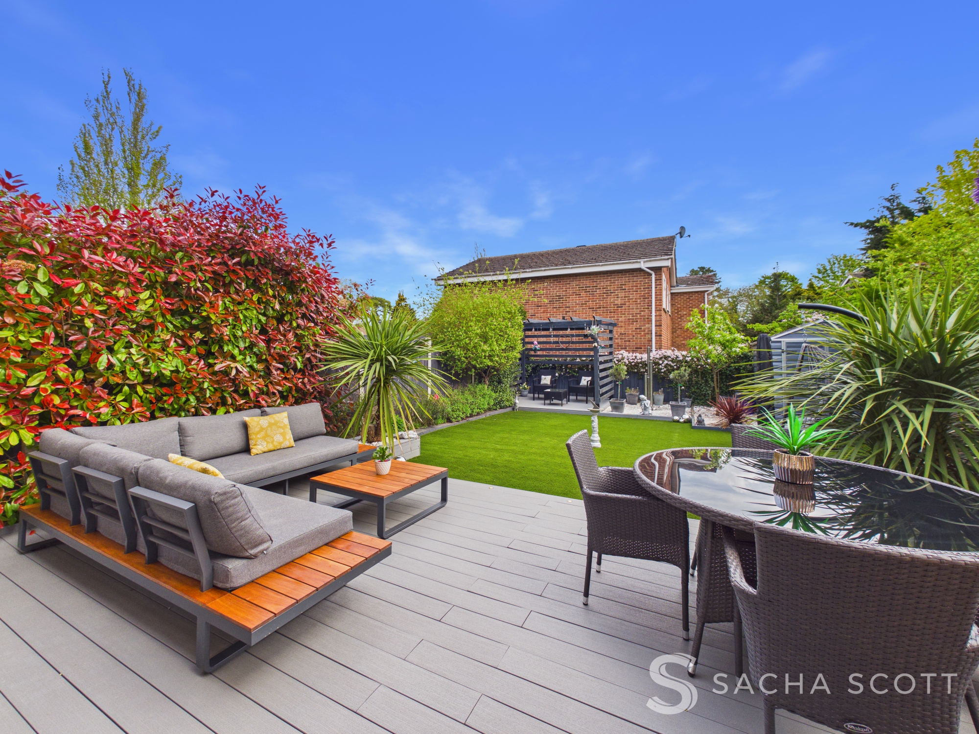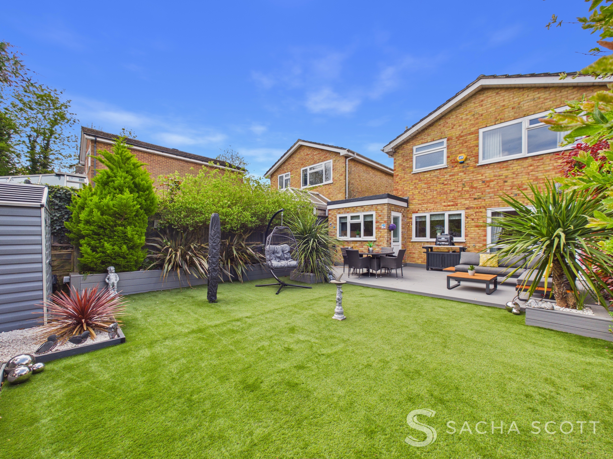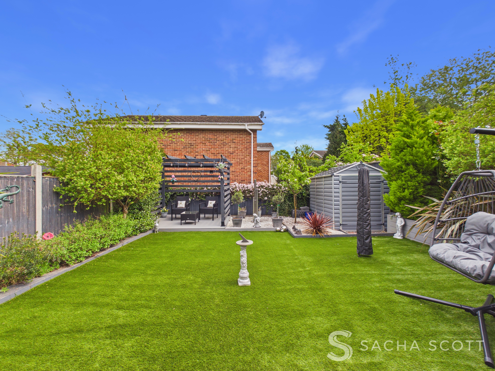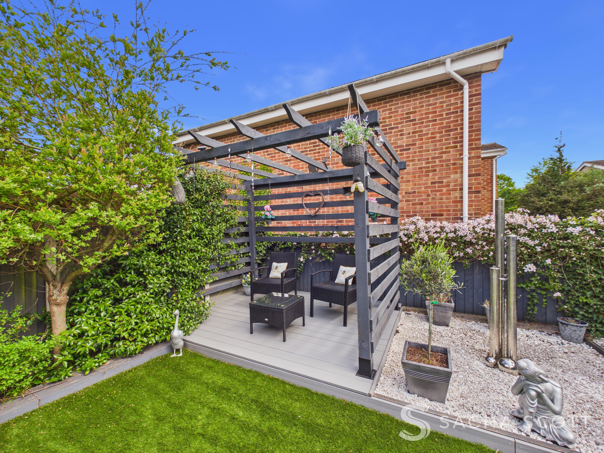 The garden is a real highlight, designed with entertaining in mind. With low maintenance astro turf, dedicated seating and dining areas and a pergola covered corner, it offers a relaxed entertaining garden that works perfectly from day through to evening.