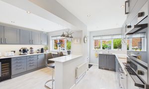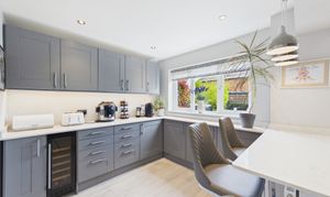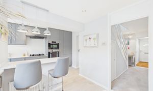 Thoughtfully refitted approx 6 years ago, this exceptional kitchen/breakfast area has been cleverly planned to make the most of the space offered. Benefiting from modern cabinetry, this gorgeous kitchen/breakfast area offers ample storage and worksurface space, a breakfast bar and views over the easy maintenance rear garden. Opening up onto the functional kitchen area, this is a bright and generous space that is presented in pristine condition throughout.