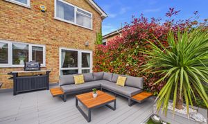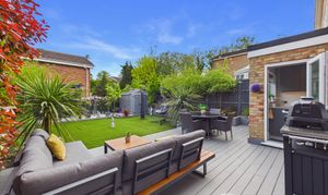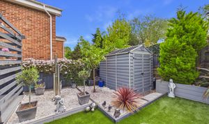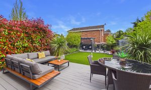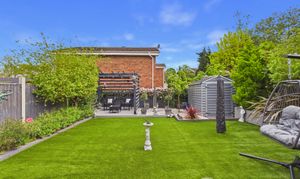 The stunning rear garden is east facing measuring approximately 40ft x 30ft and beautifully landscaped, featuring a generous illuminated decking area ideal for garden furniture and a barbecue, along with a pergola providing a further seating space. The garden also includes a shed, planted borders, external lighting and power sockets, with side access available via the garage from the kitchen.