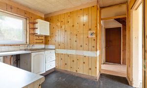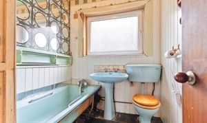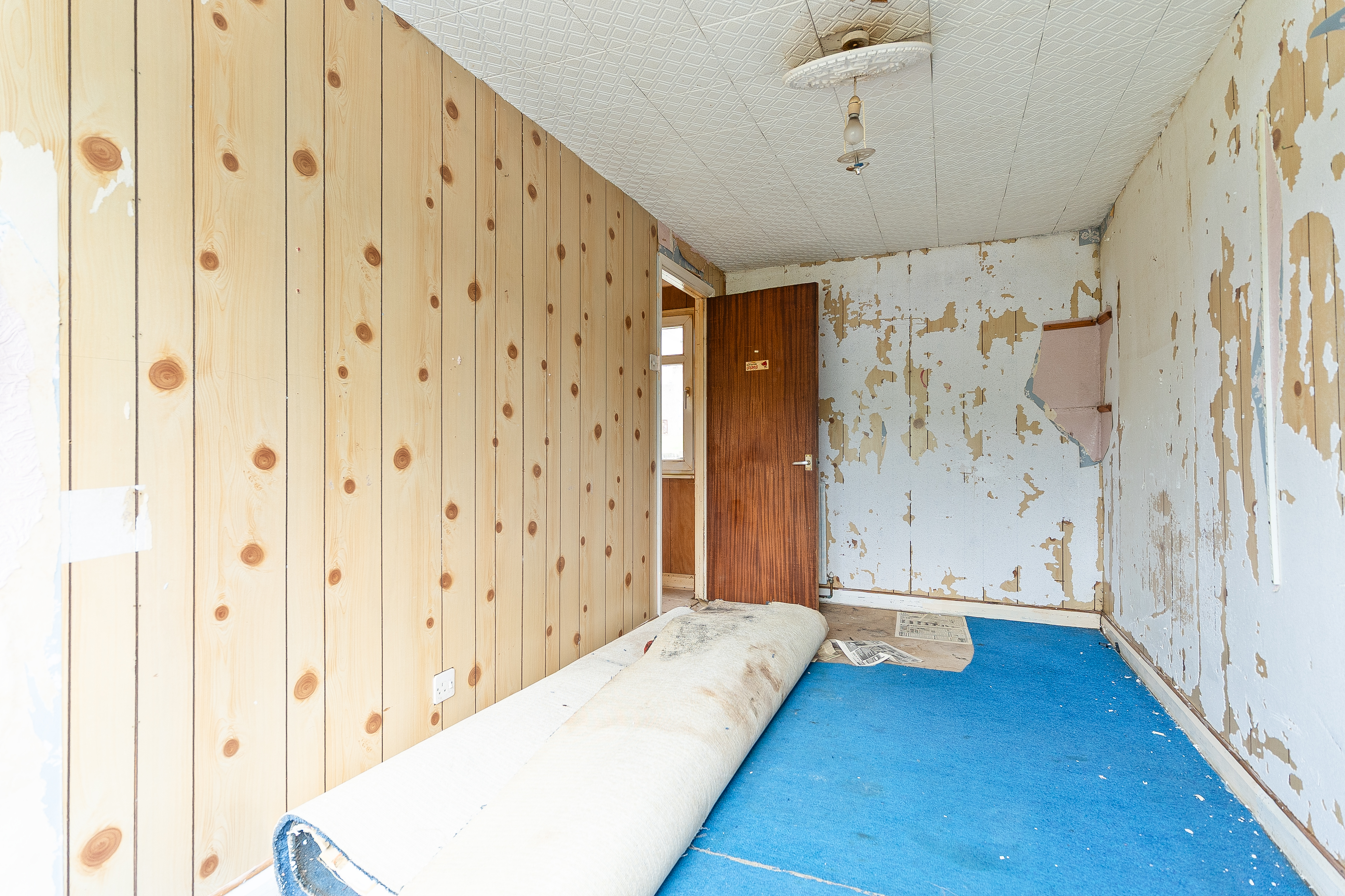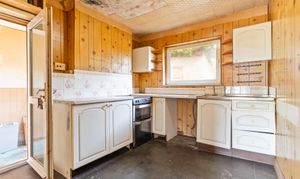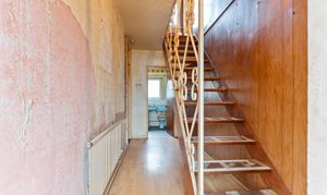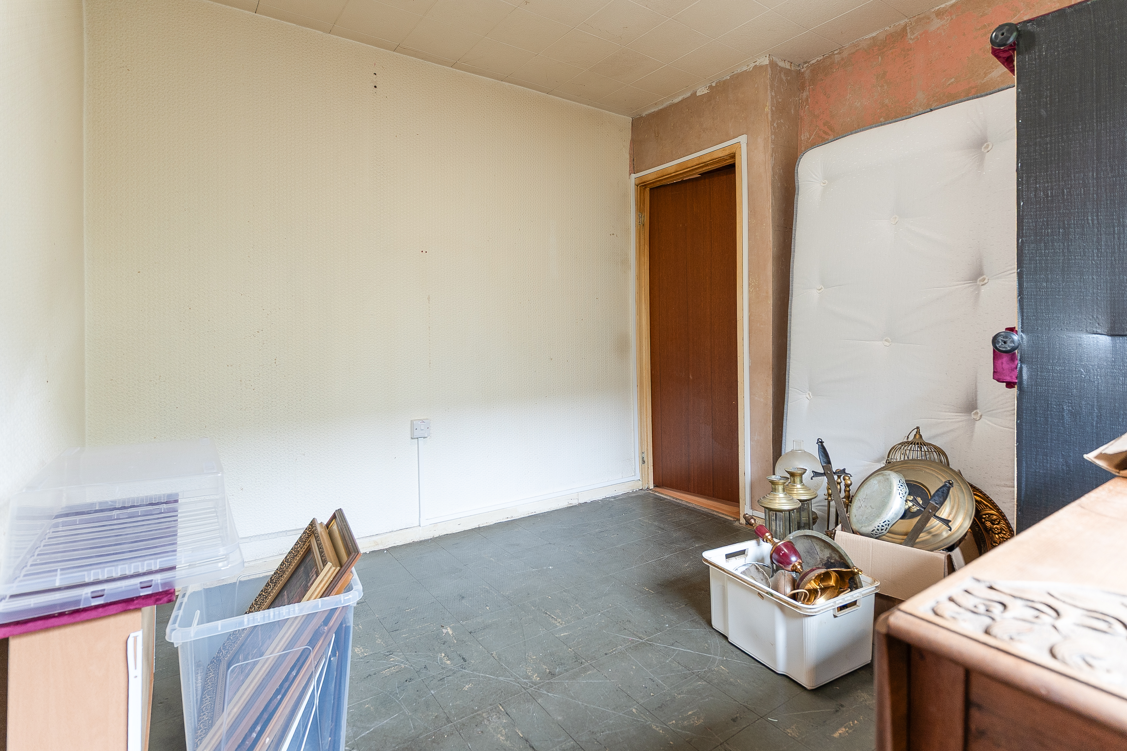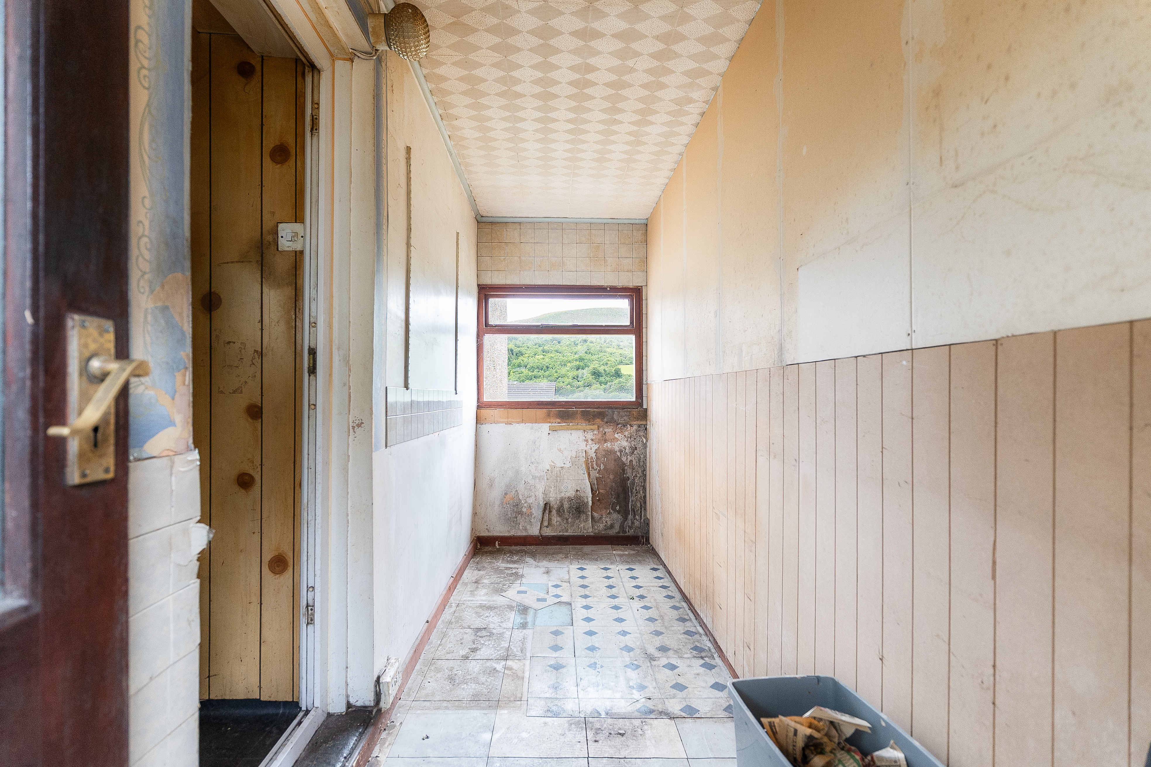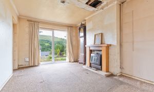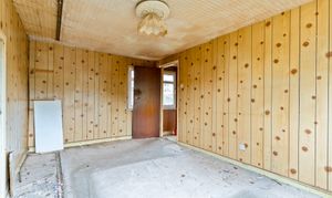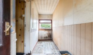 To the front of the property is a private driveway, offering convenient off-road parking. You enter the home through a porch area, which leads into the kitchen — a practical space that could be reconfigured or modernised to suit a buyer's needs. From the kitchen, you step into the bright living room, and from there, you have access to the main hallway. The hallway connects to two ground floor bedrooms and the family bathroom, offering flexible living arrangements with potential for multi-generational living, a home office, or guest accommodation.