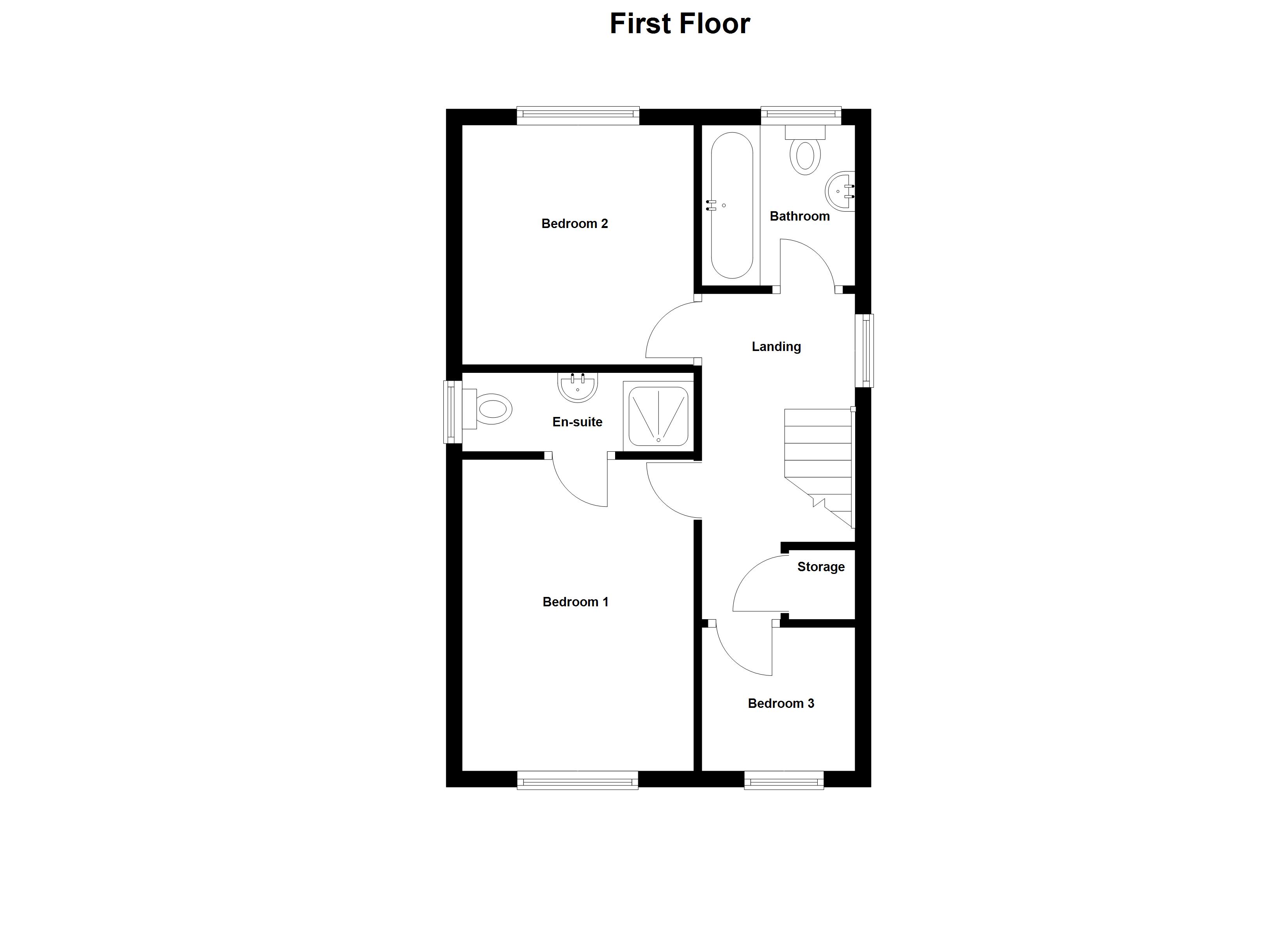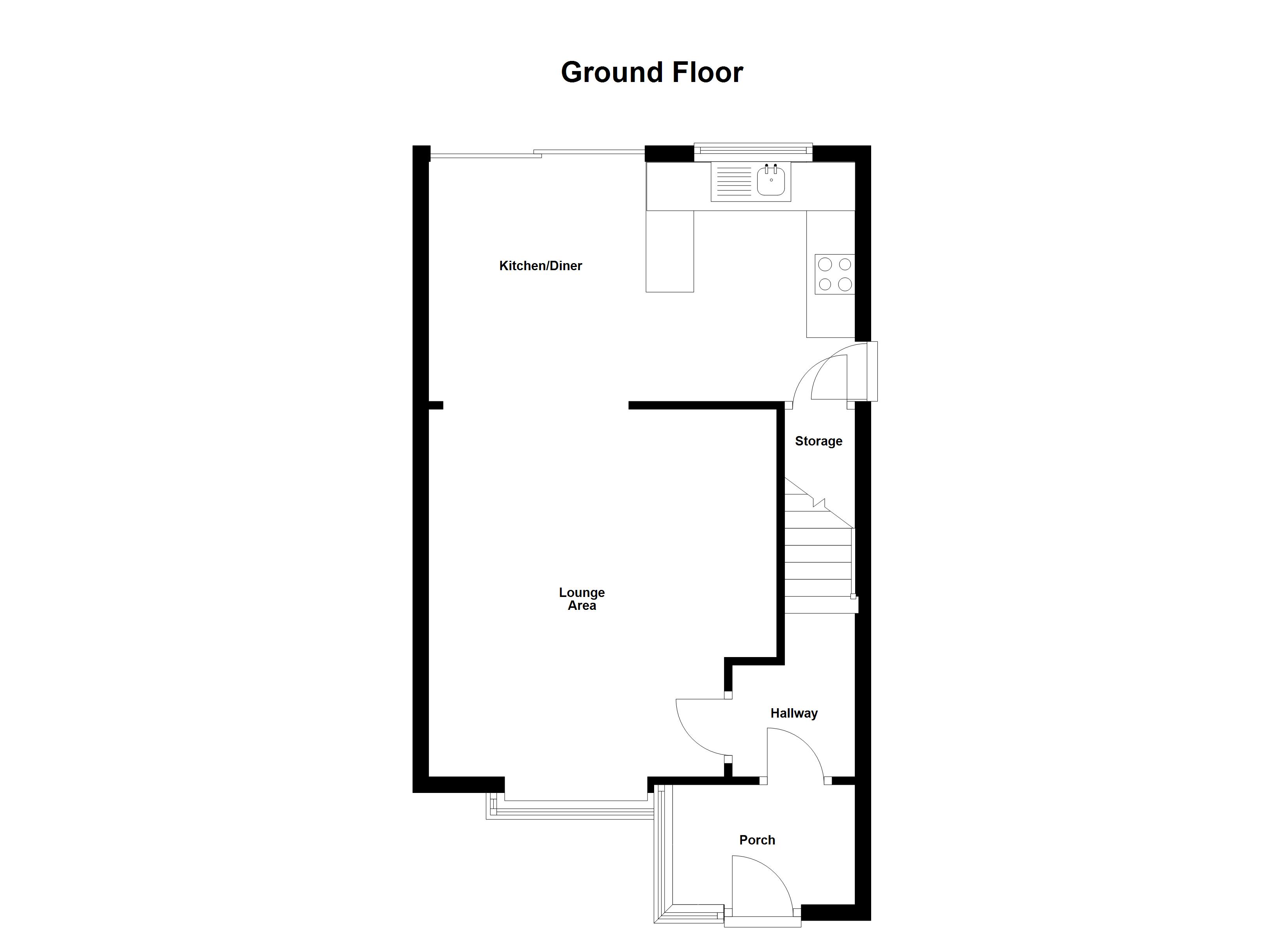 External door to front elevation. Stairs to First Floor elevation. Open to;