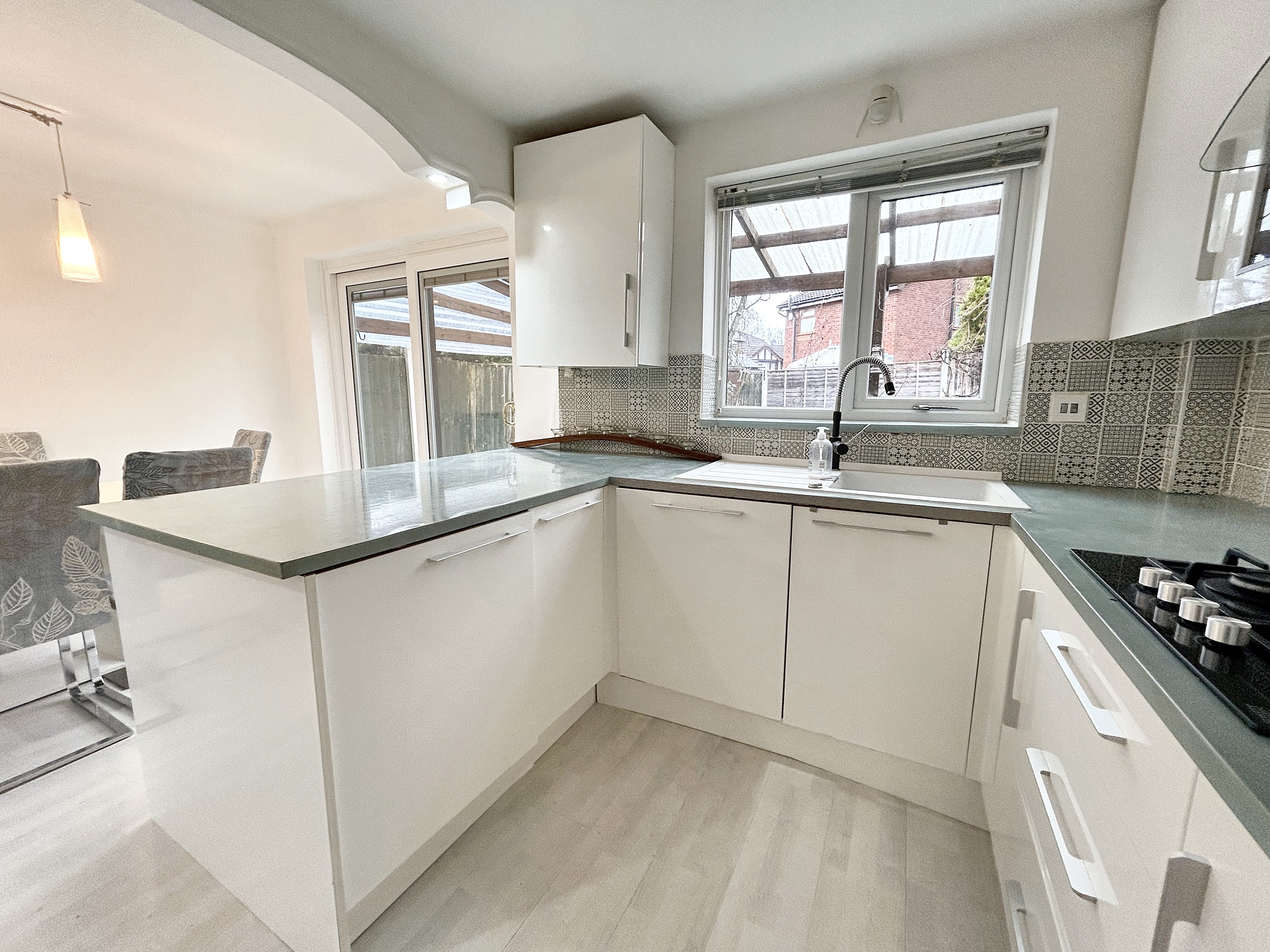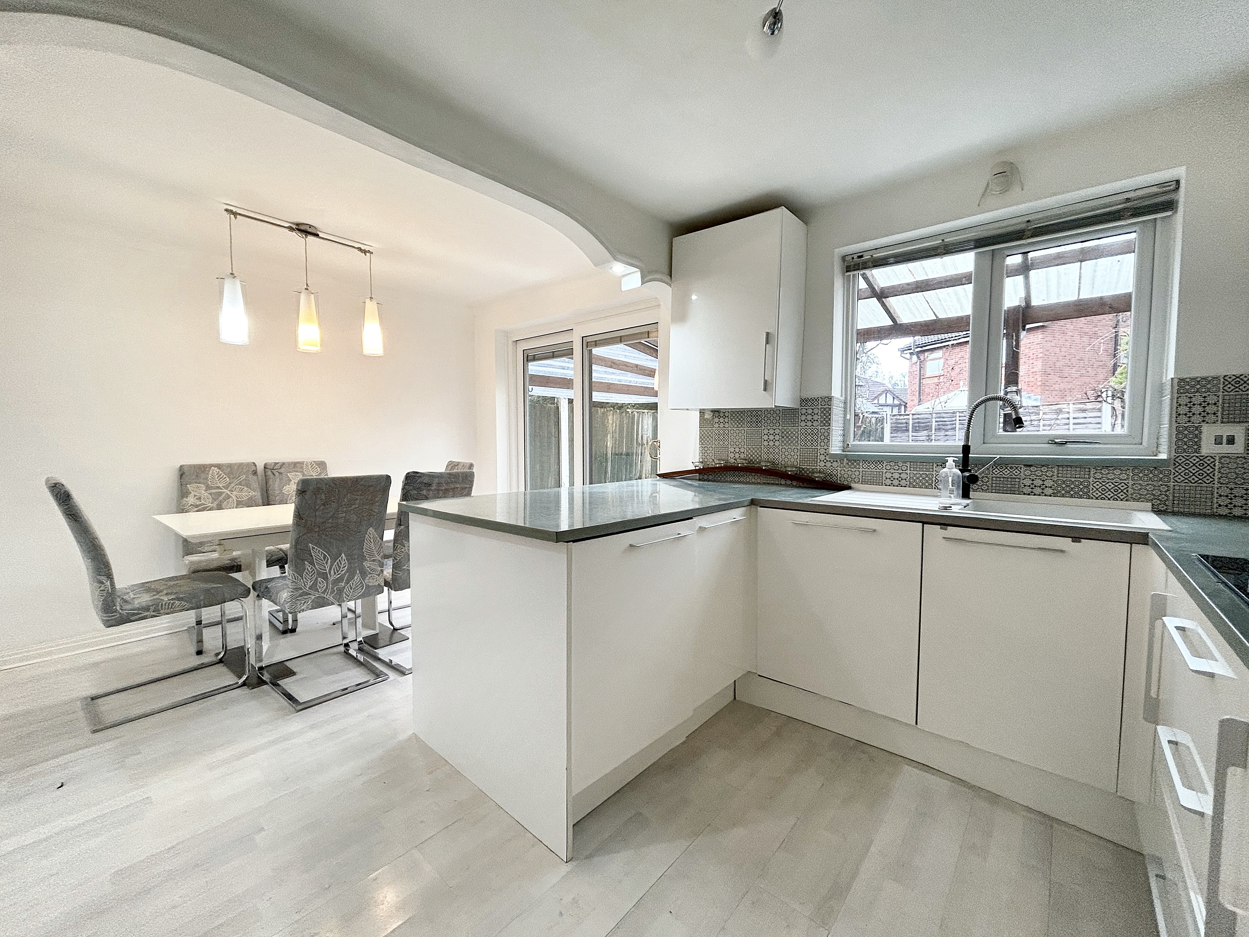 The property features a spacious lounge, a modern kitchen with integrated appliances, open to a separate dining area, providing ample space for both relaxing and entertaining. Upstairs, the master bedroom benefits from its own en-suite shower room (ideal for privacy and convenience), while two further bedrooms and a contemporary family bathroom complete the accommodation.