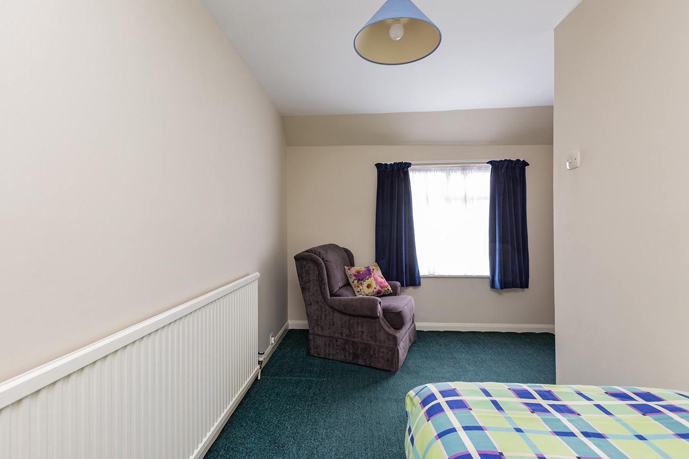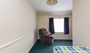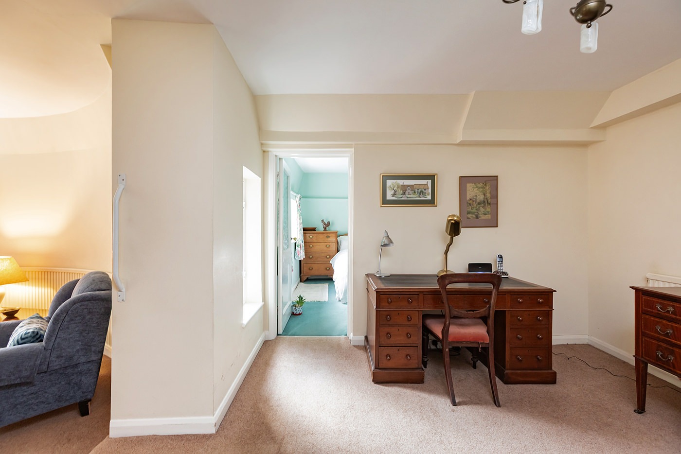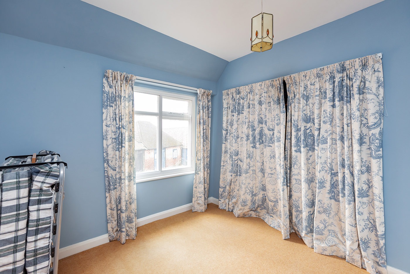 Situated in roundel with 2 window outlook over rear garden and open fireplace.
