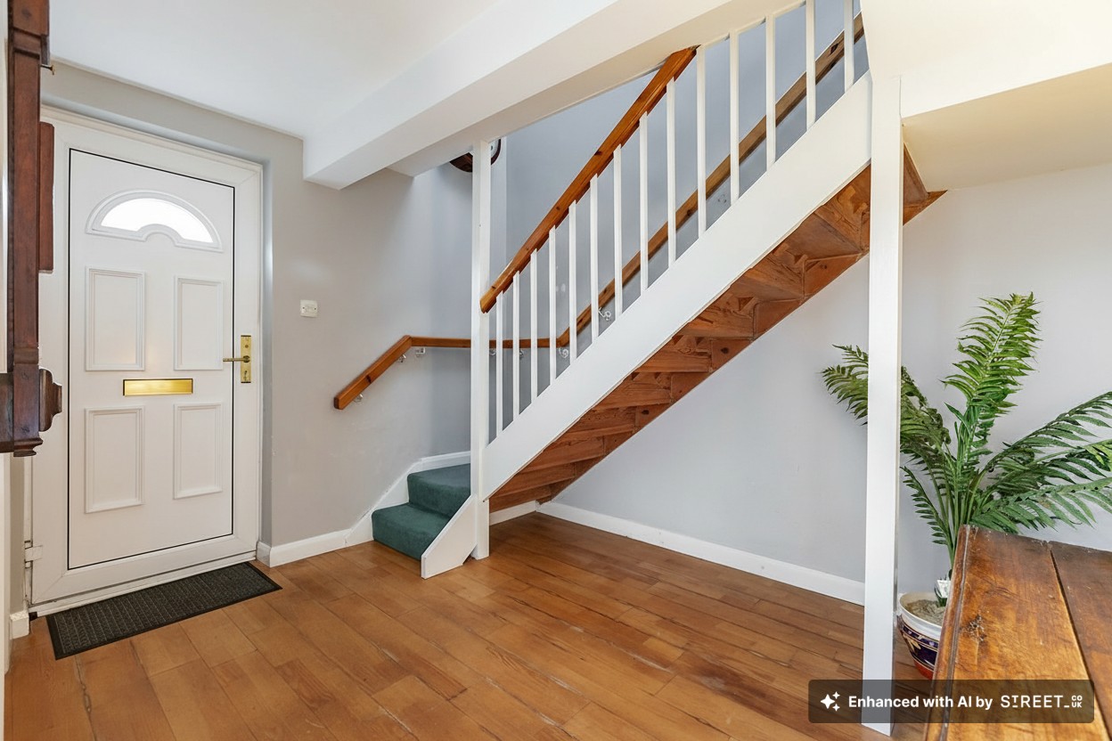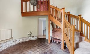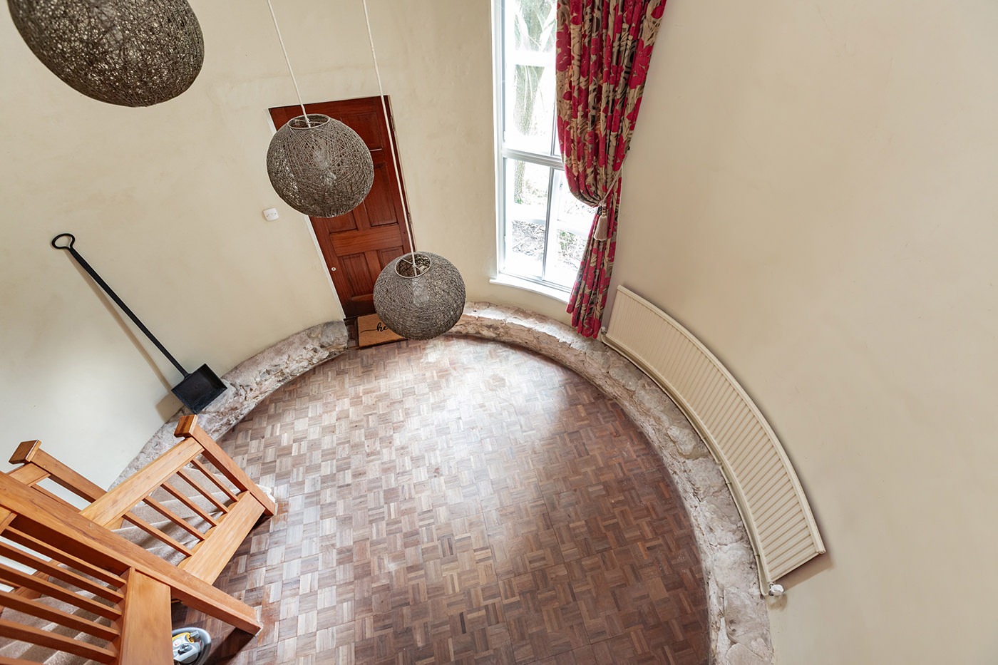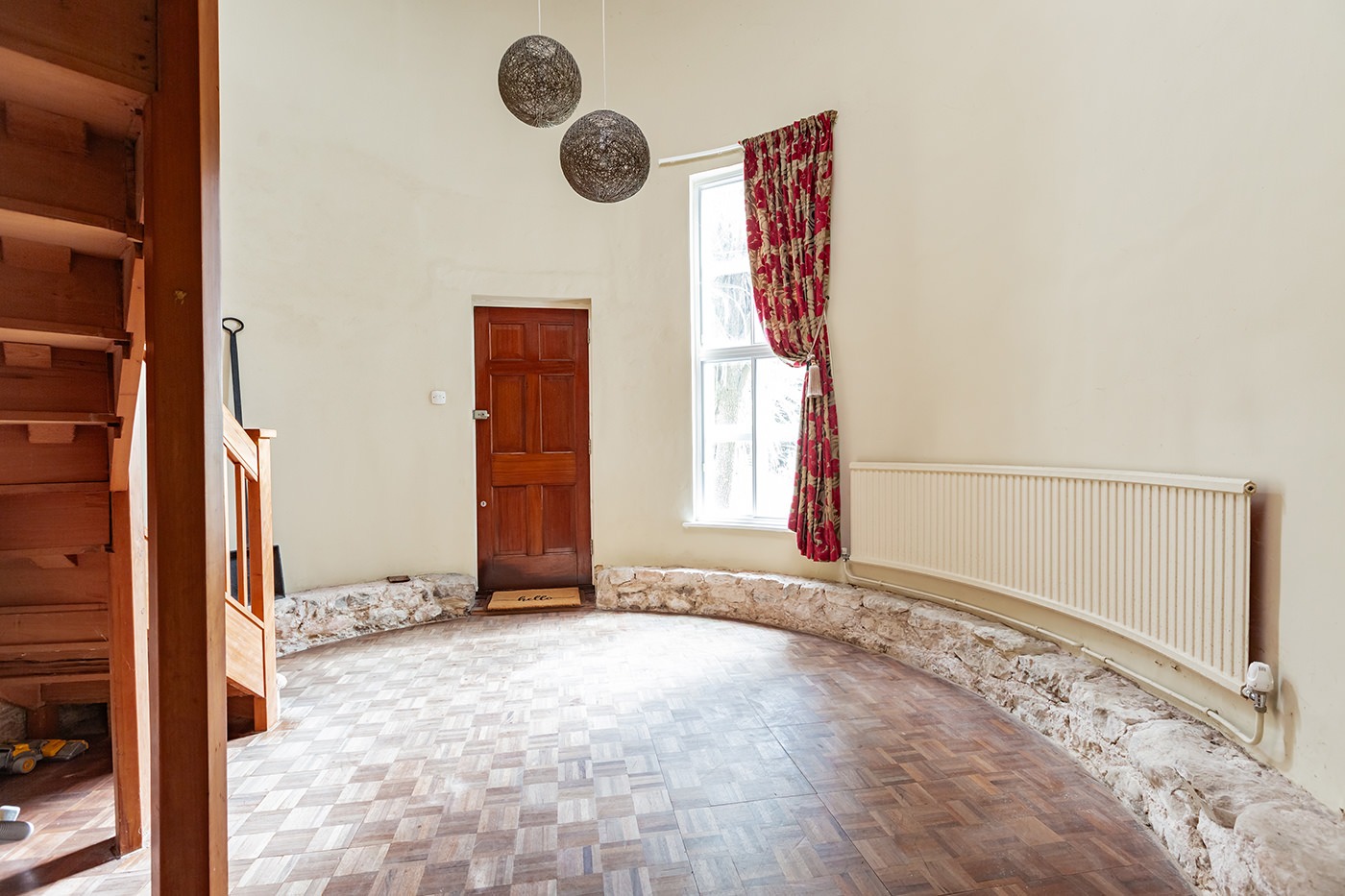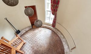 Entrance to roundel with stairs leading to first floor and ground floor hallway.