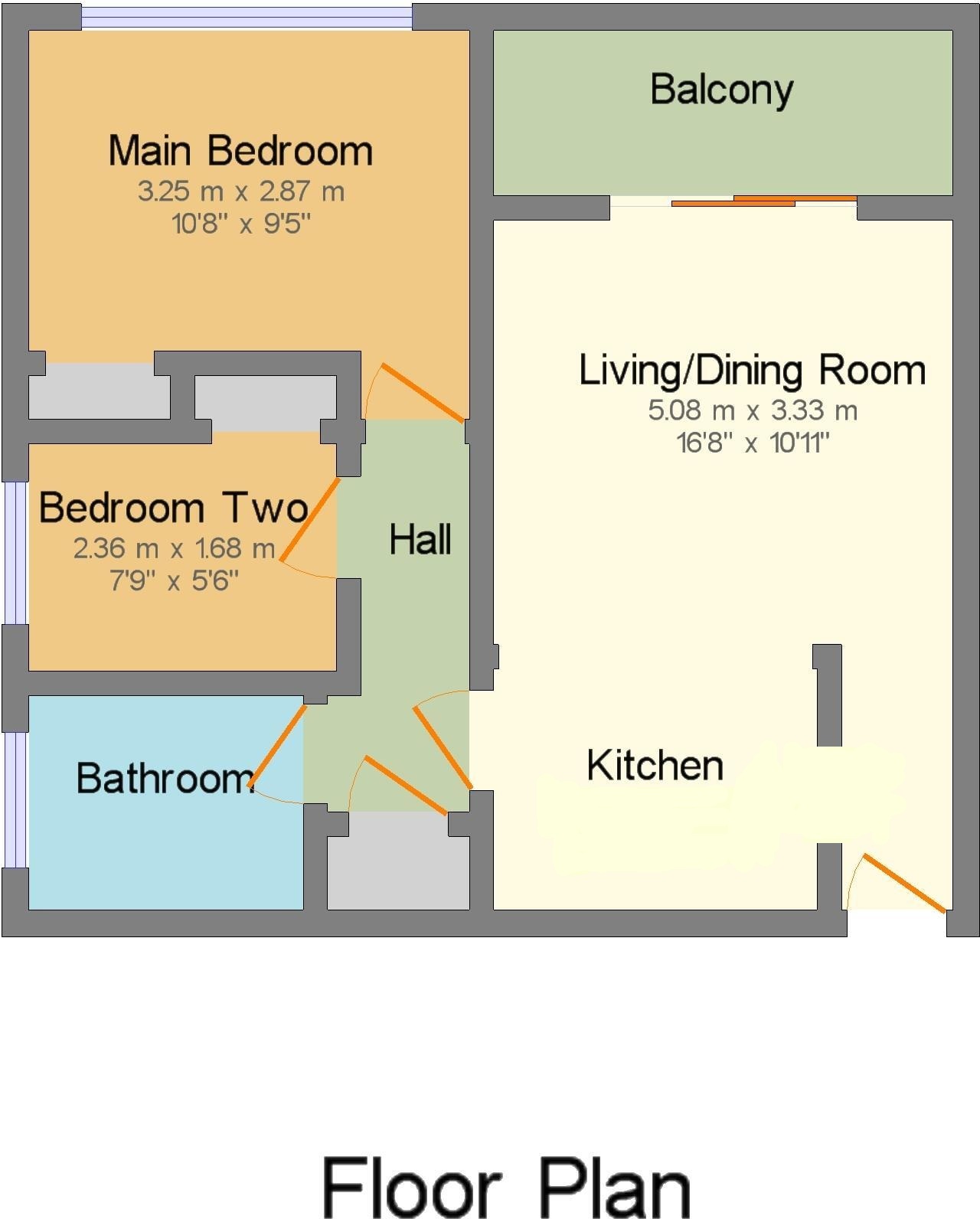 MEASUREMENTS: 17’03” x 10’09” (5.25m x 3.27m), Bedroom One 10’10” x 8’02” (3.30m x 2.49m), Bedroom Two 7’09” x 5’06” (2.36m x 1.68m).