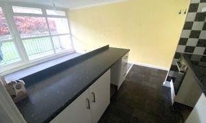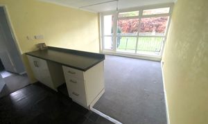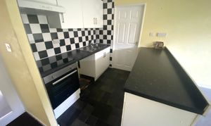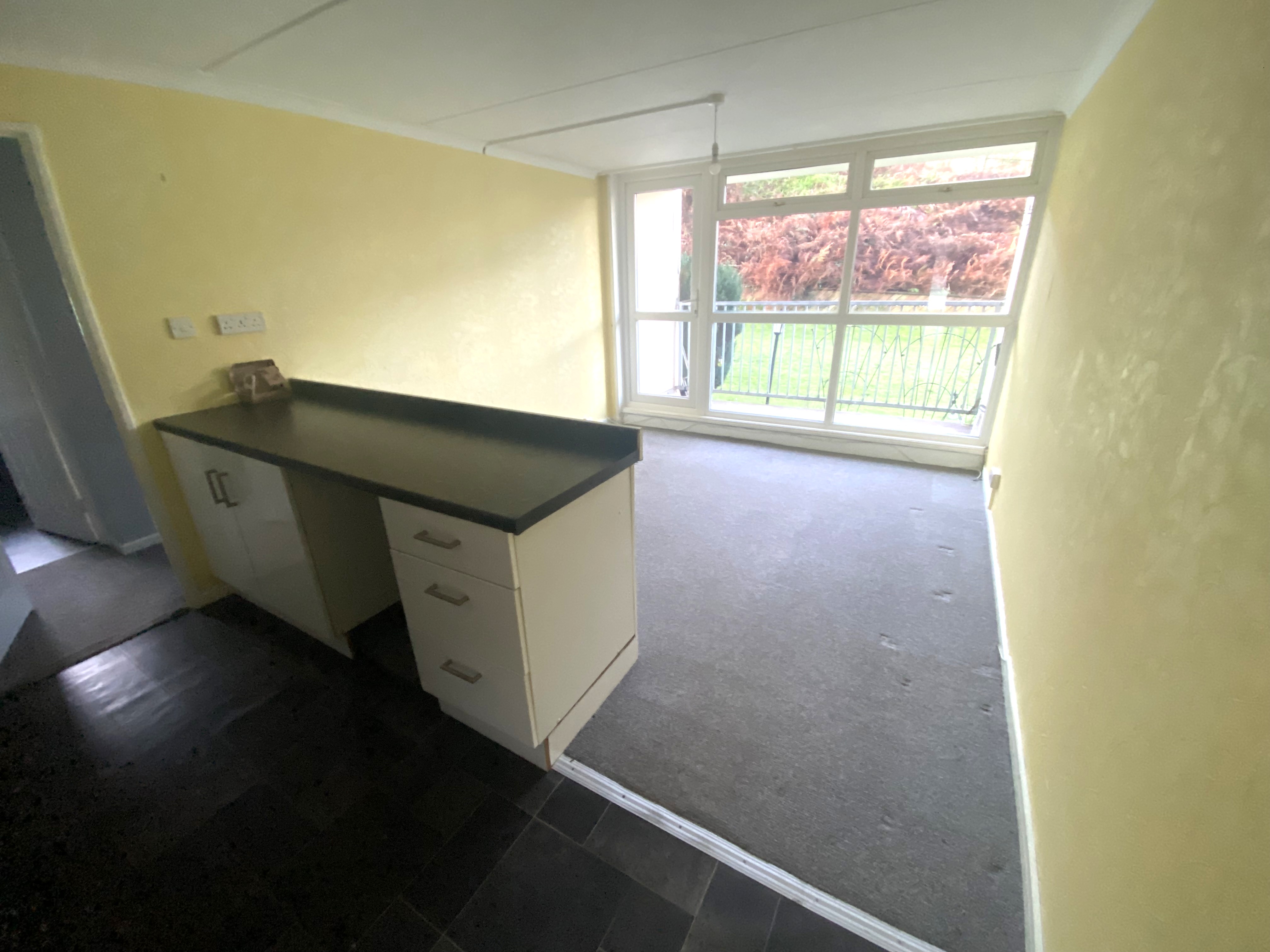 Upon entering the property, you are greeted by the open plan kitchen/living space and then by the full height and width double-glazed patio doors which open onto the west facing balcony, providing the room with lots of natural light. The kitchen includes wall and base units, four ring electric hob, oven, and space for a washing machine/dryer, dishwasher or fridge/freezer.