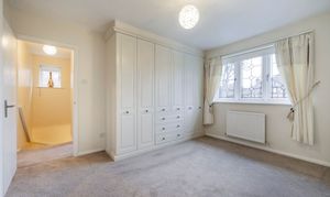 The second double bedroom with views over the garden is neutrally decorated and fitted with two double wardrobes. The perfect space to furnish and enjoy with plenty of scope for a dressing table or desk.