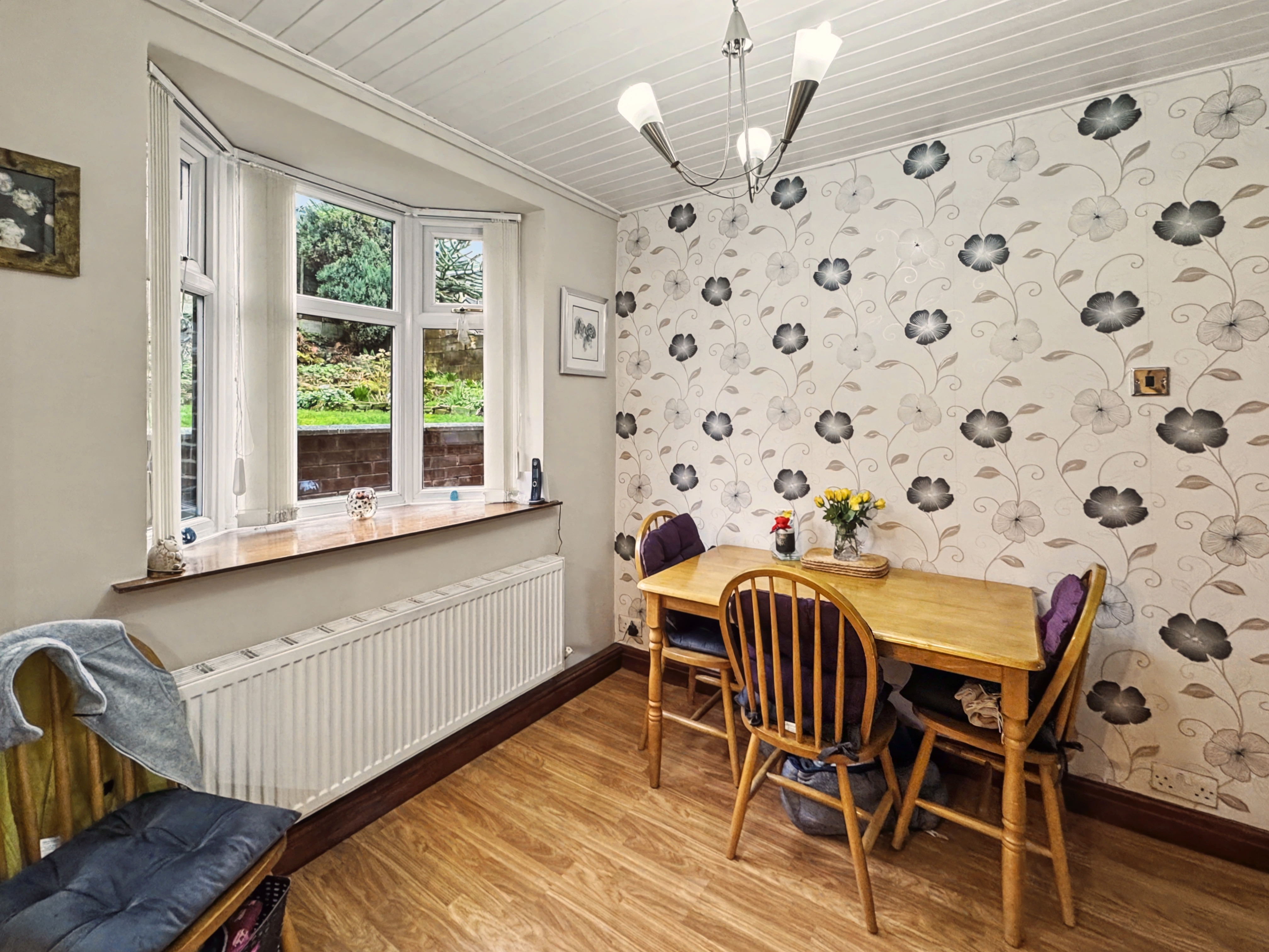 The home benefits from a driveway providing convenient off-road parking, while internally the accommodation is thoughtfully arranged. A spacious lounge enjoys pleasant views over both the front and rear gardens, creating a bright and comfortable setting ideal for relaxing or entertaining.