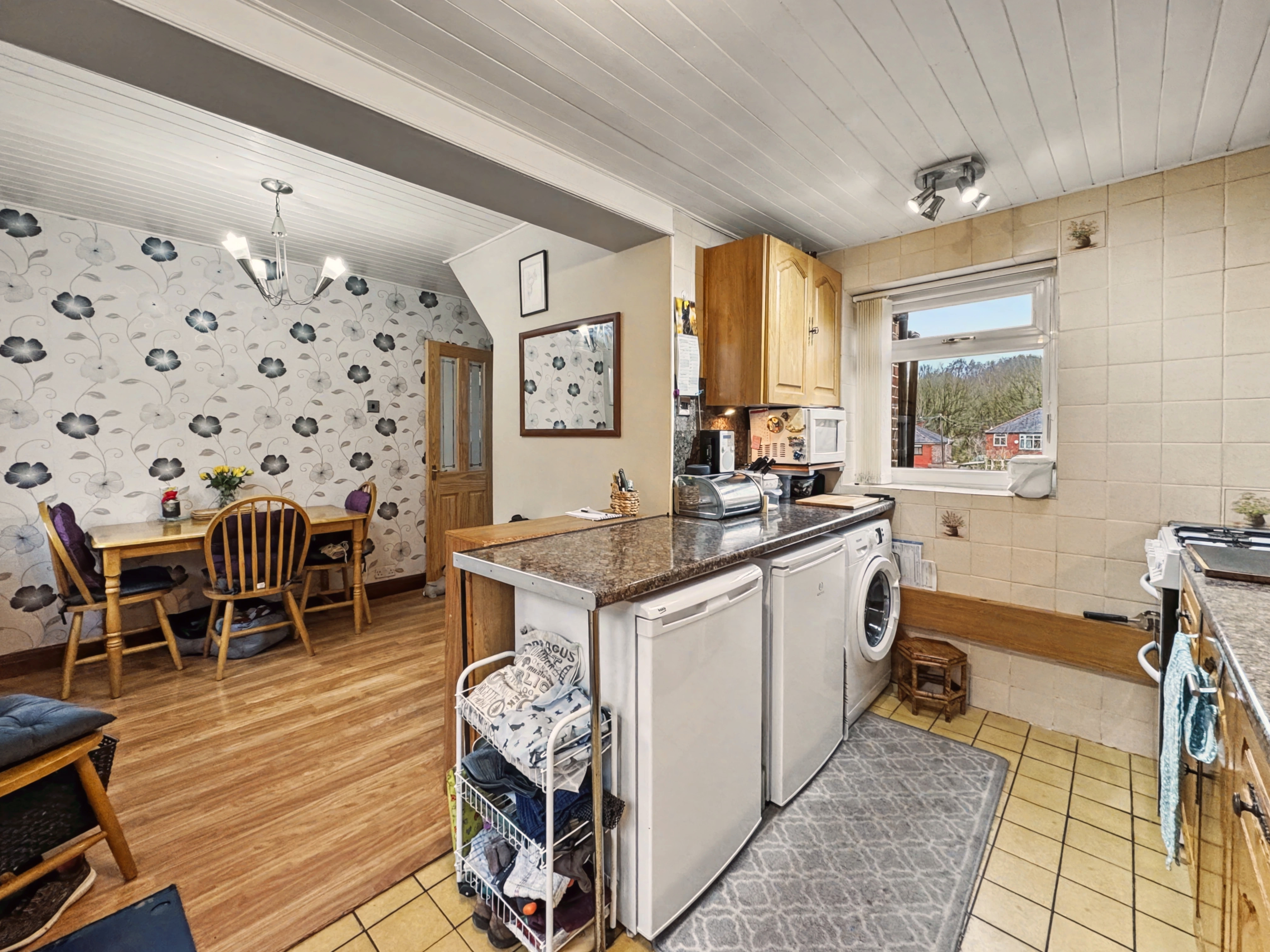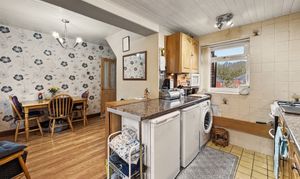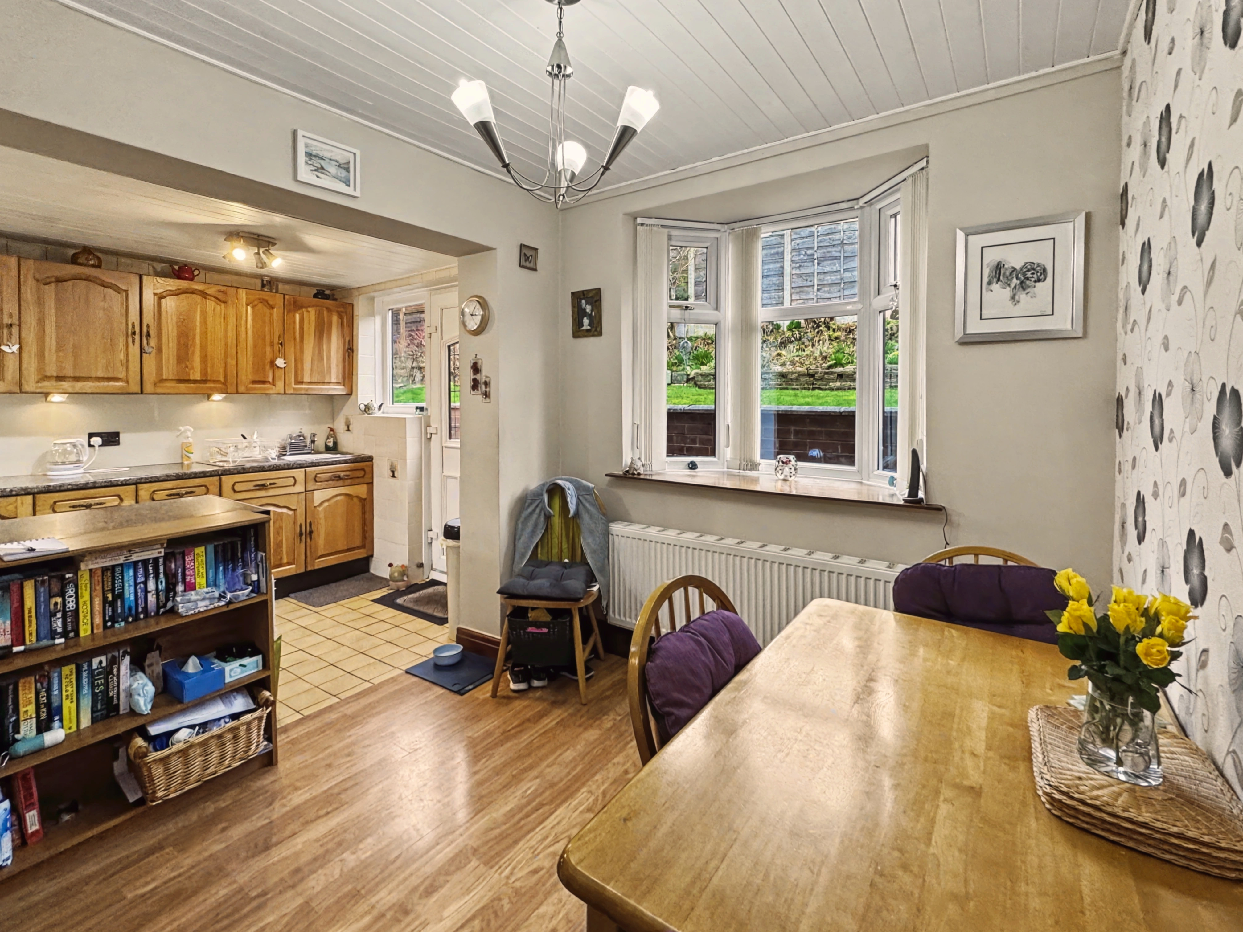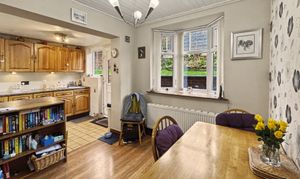 To the rear of the property, an open-plan kitchen and dining area provides a practical and sociable space, with direct access to the garden, making it well suited for family life and hosting guests.