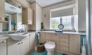 The central stairwell leads to the first-floor landing with access to four double bedrooms, airing cupboard and the family bathroom. Bedrooms one and two have built-in wardrobes, with bedroom one also having an ensuite shower room. The family bathroom has been fitted with a white suite comprising panelled bath with shower & shower screen, WC, and pedestal basin.