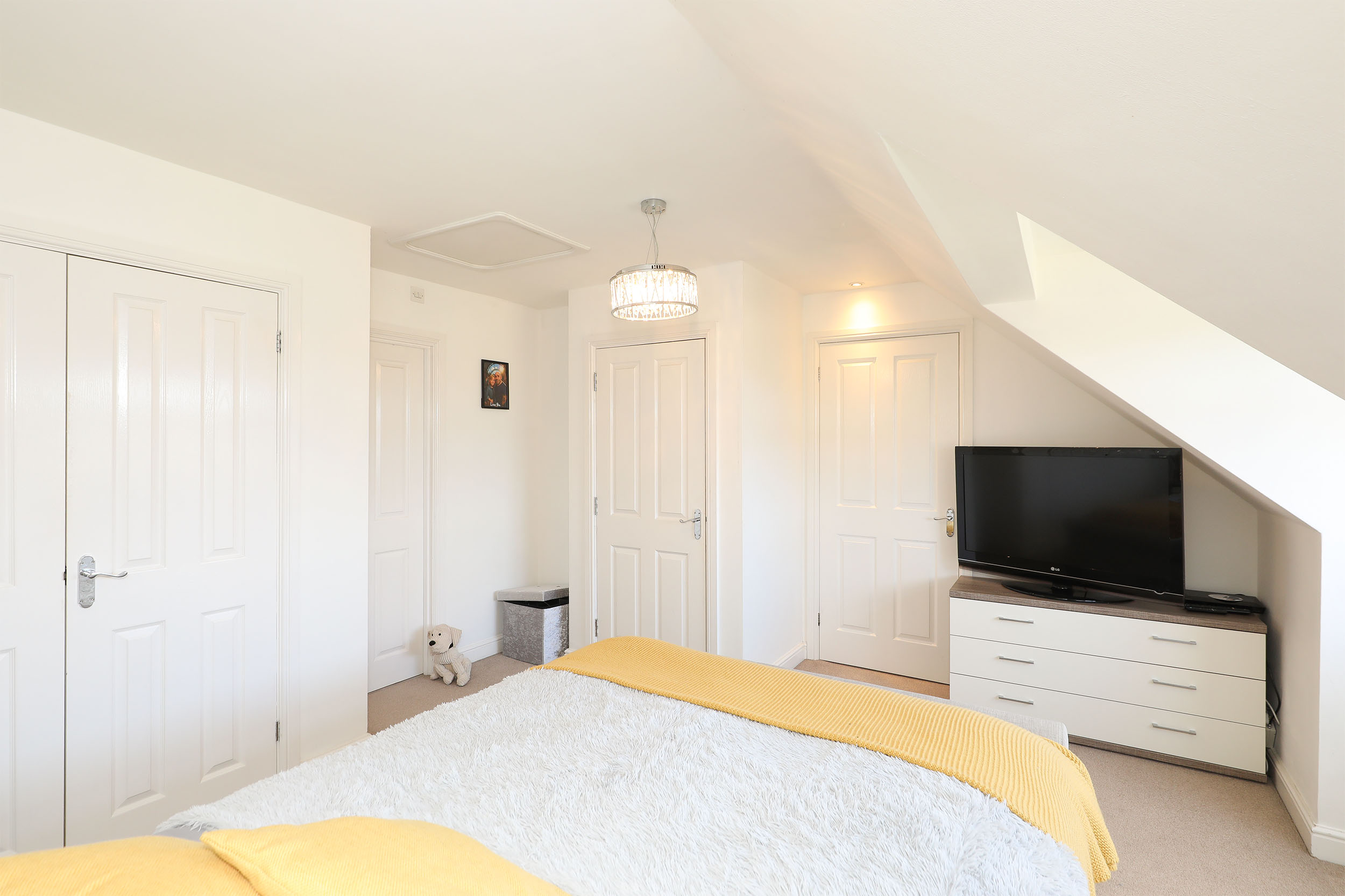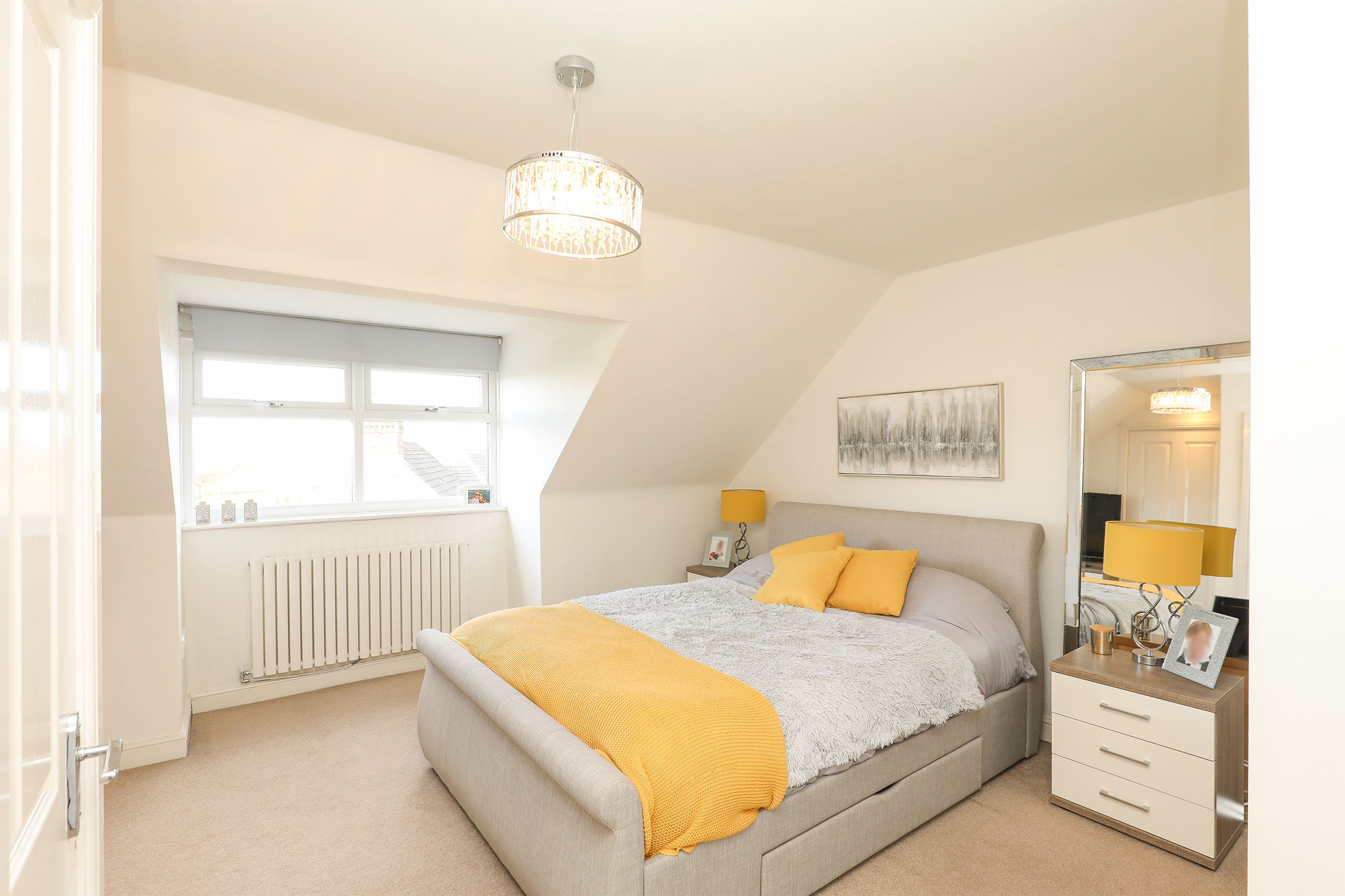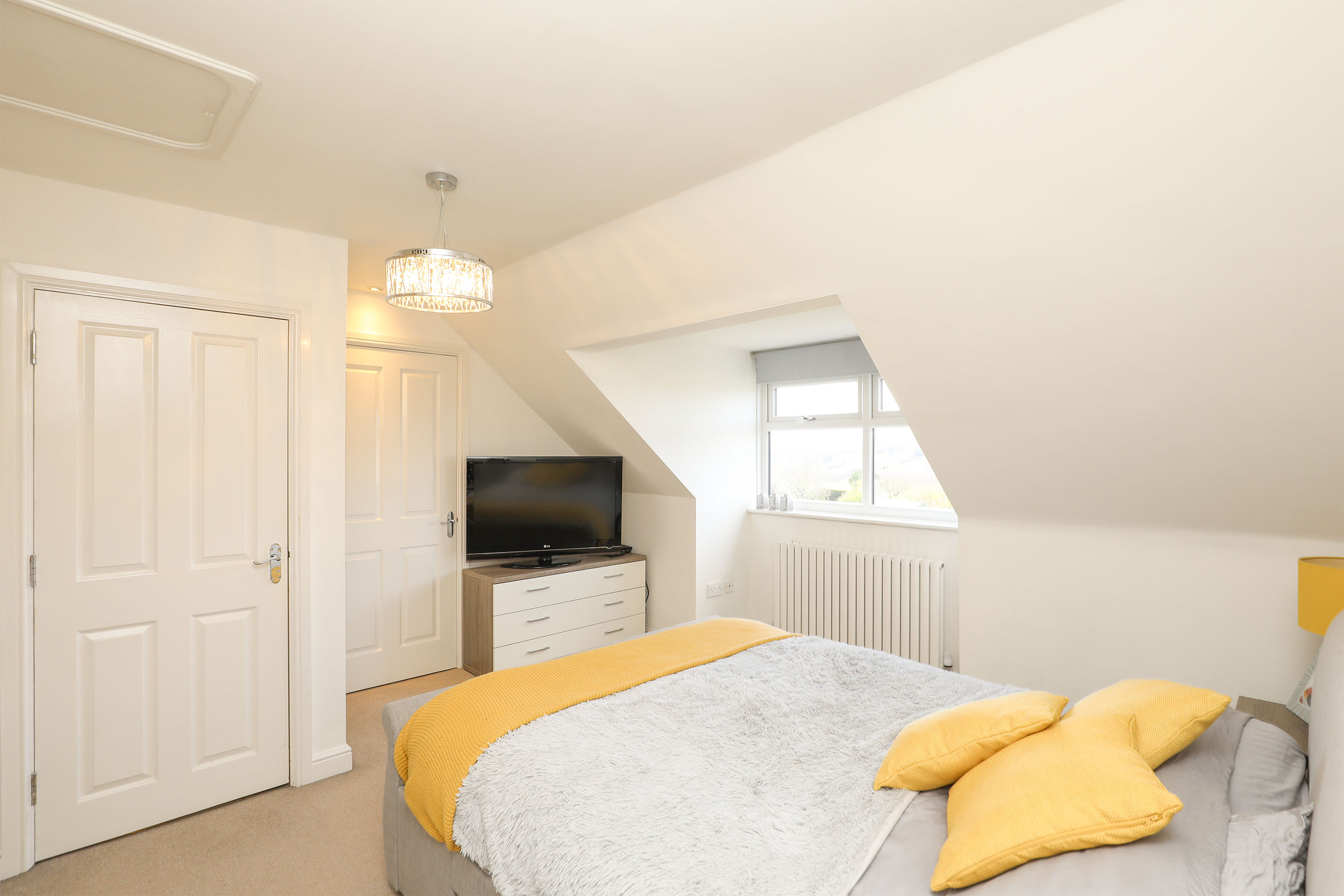 Occupying the entire second floor, the principal bedroom provides an impressive space, benefitting from an en-suite bathroom, extensive fitted storage, and picturesque elevated views.