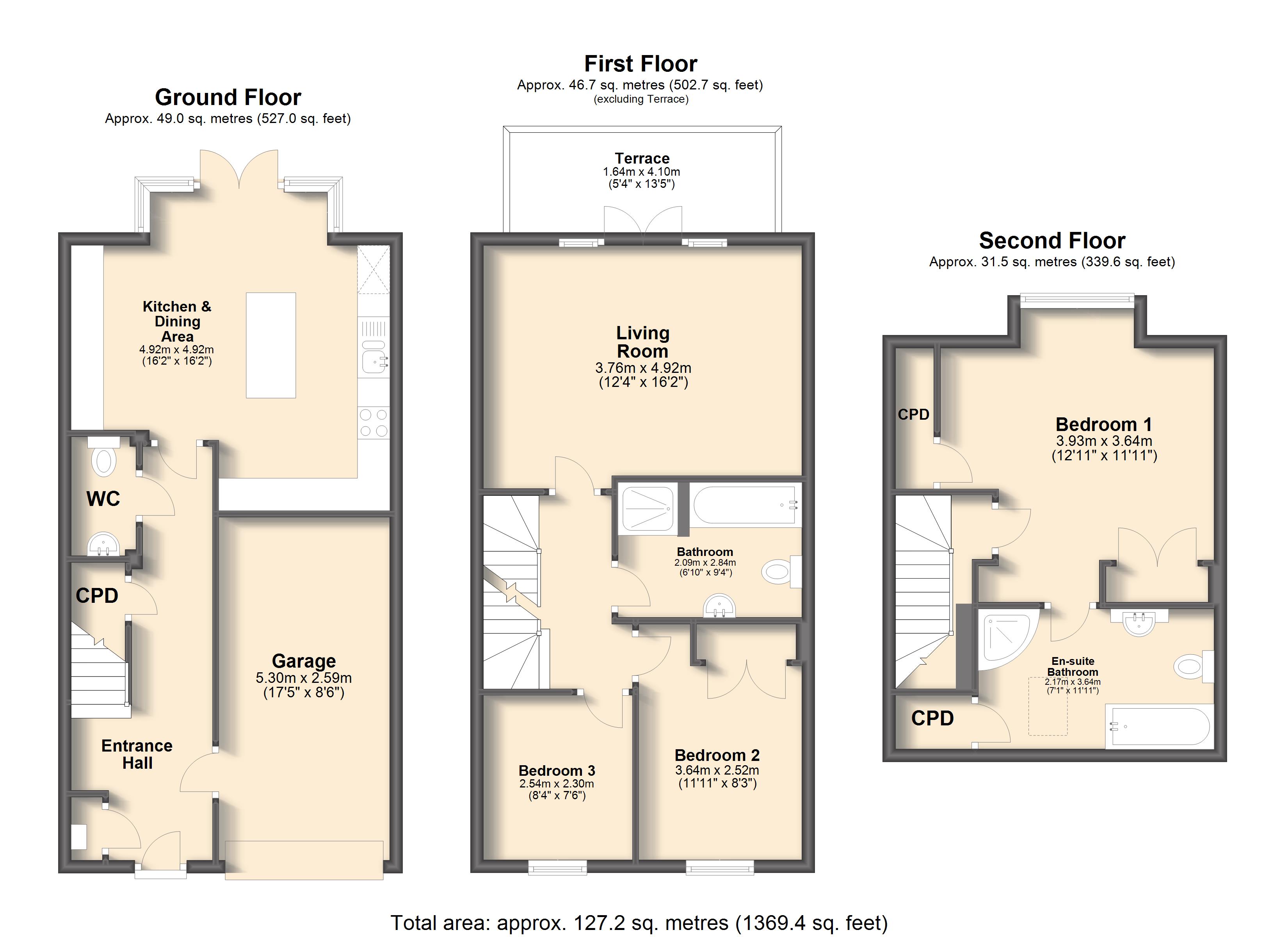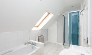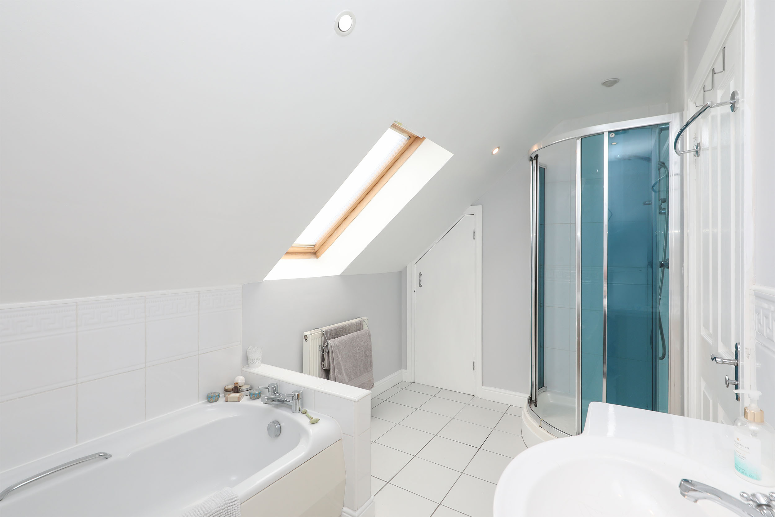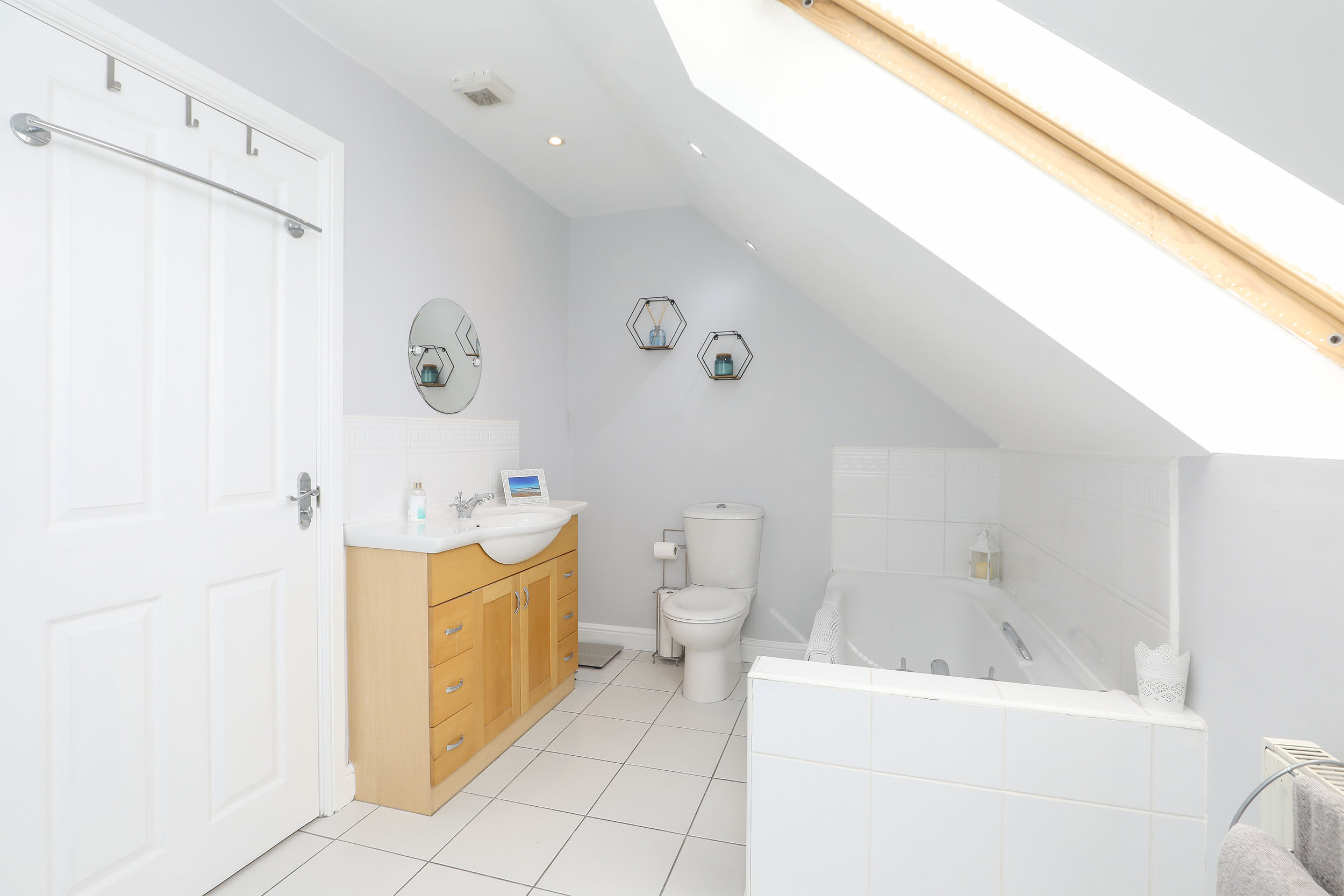 Occupying the entire second floor, the principal bedroom provides an impressive space, benefitting from an en-suite bathroom, extensive fitted storage, and picturesque elevated views.