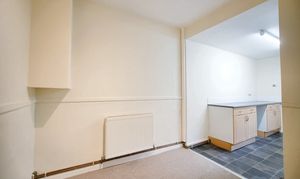 With vinyl flooring, laminate work surfaces, sink/drainer, space for appliances, double glazed window and door leading to the hallway.