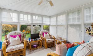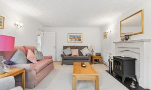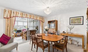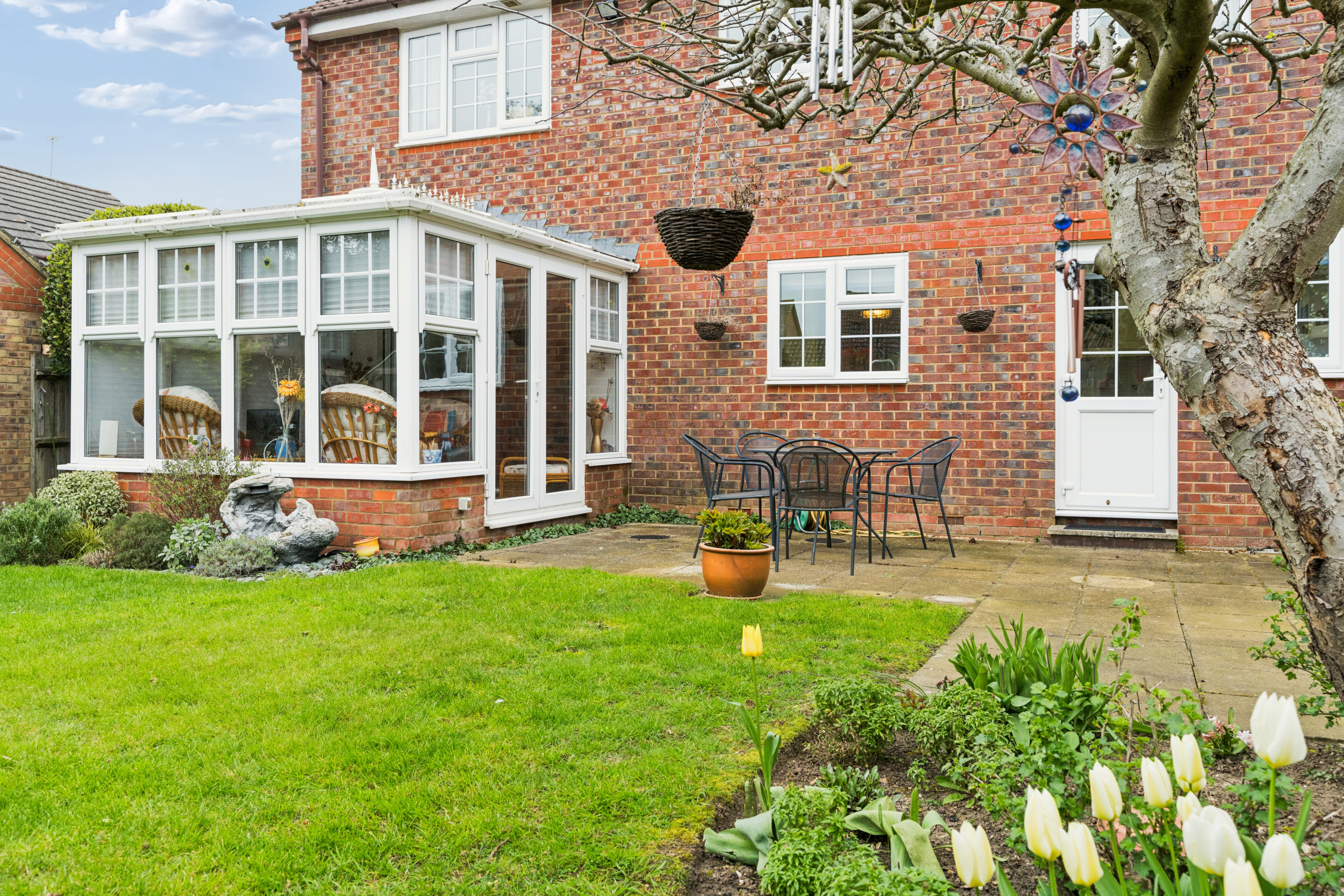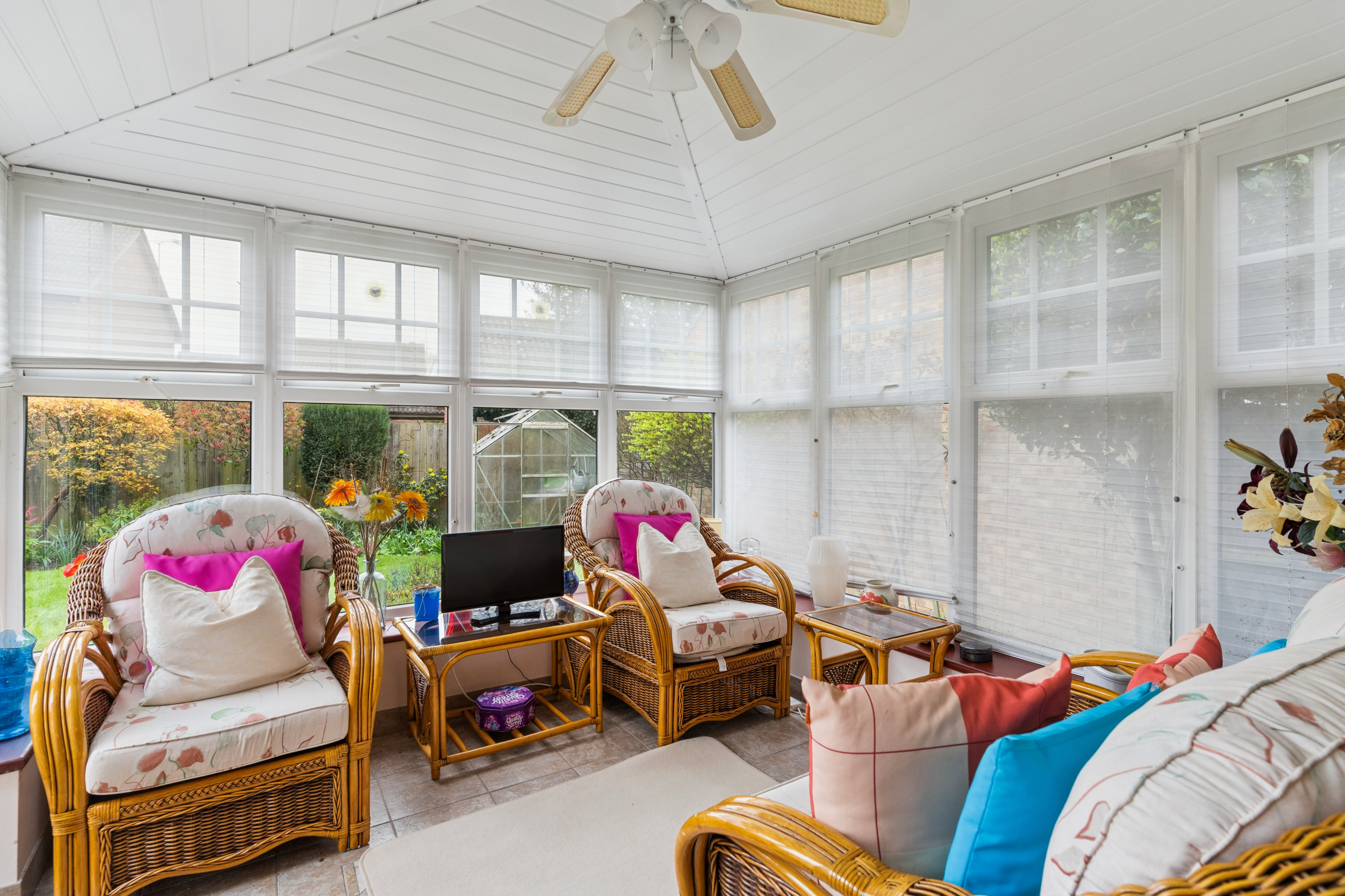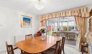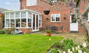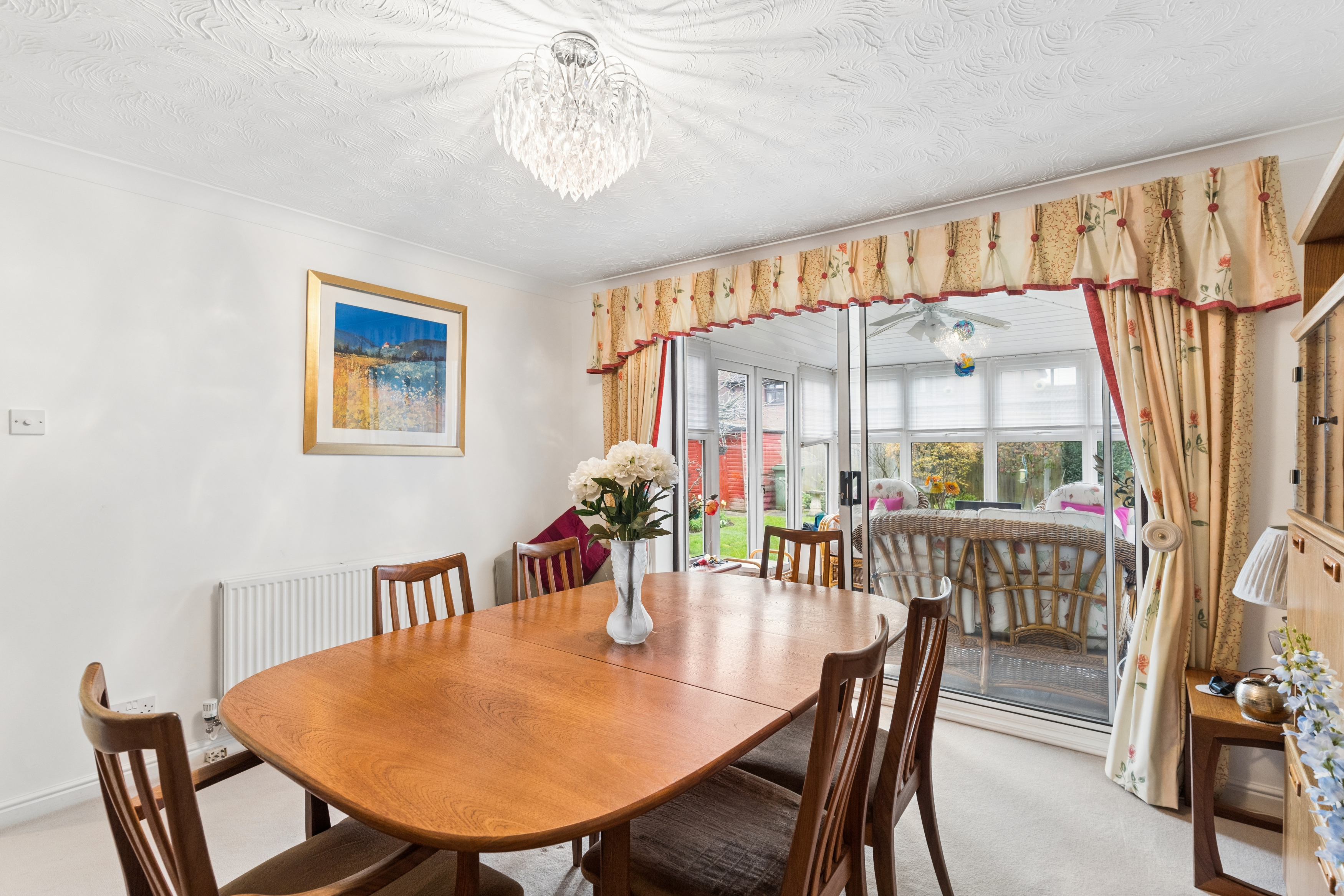 Upon entering, you are welcomed by a bright entrance hallway that leads to a generous living room, featuring a stylish fireplace that creates a warm and inviting focal point. The separate dining room provides an space for entertaining guests or enjoying family meals, while the well-appointed kitchen and breakfast room is fitted with a range of contemporary units and integrated appliances. A conservatory, accessed from the dining room, provides an additional reception area filled with natural light, perfect for relaxing or as a flexible family space.