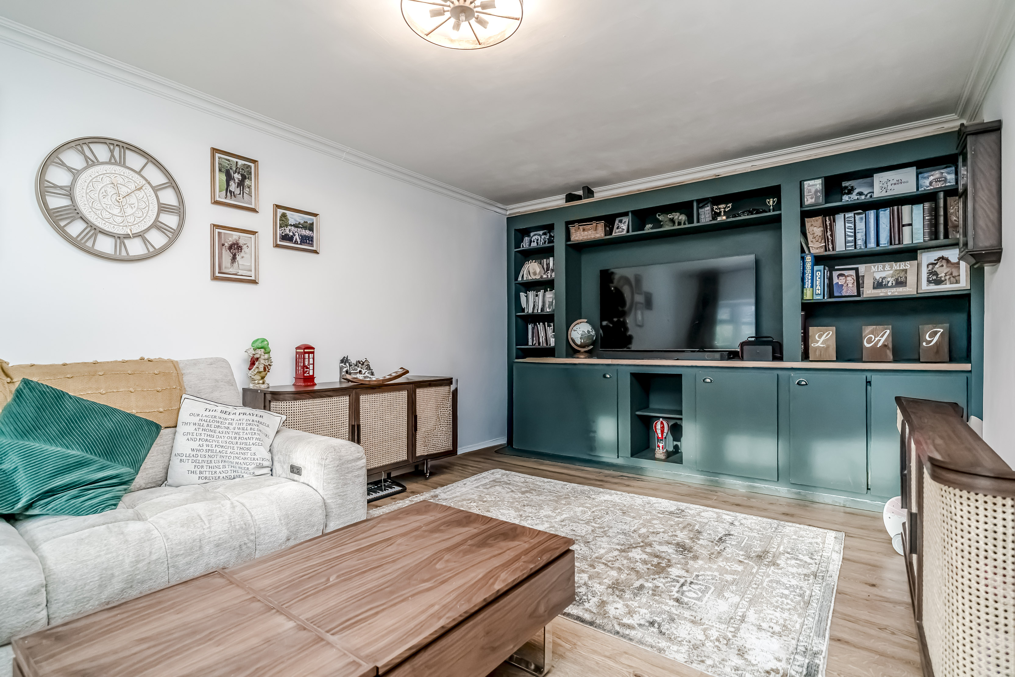 Stepping through the porch, you are greeted by a welcoming hallway that instantly sets the tone for the rest of the home, complete with a practical downstairs WC that’s ideal for busy family life or visiting guests. The main lounge is a cosy retreat, featuring a beautiful bay window that floods the space with natural light and a striking media feature wall that creates a focal point for relaxing evenings or entertaining friends.