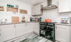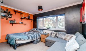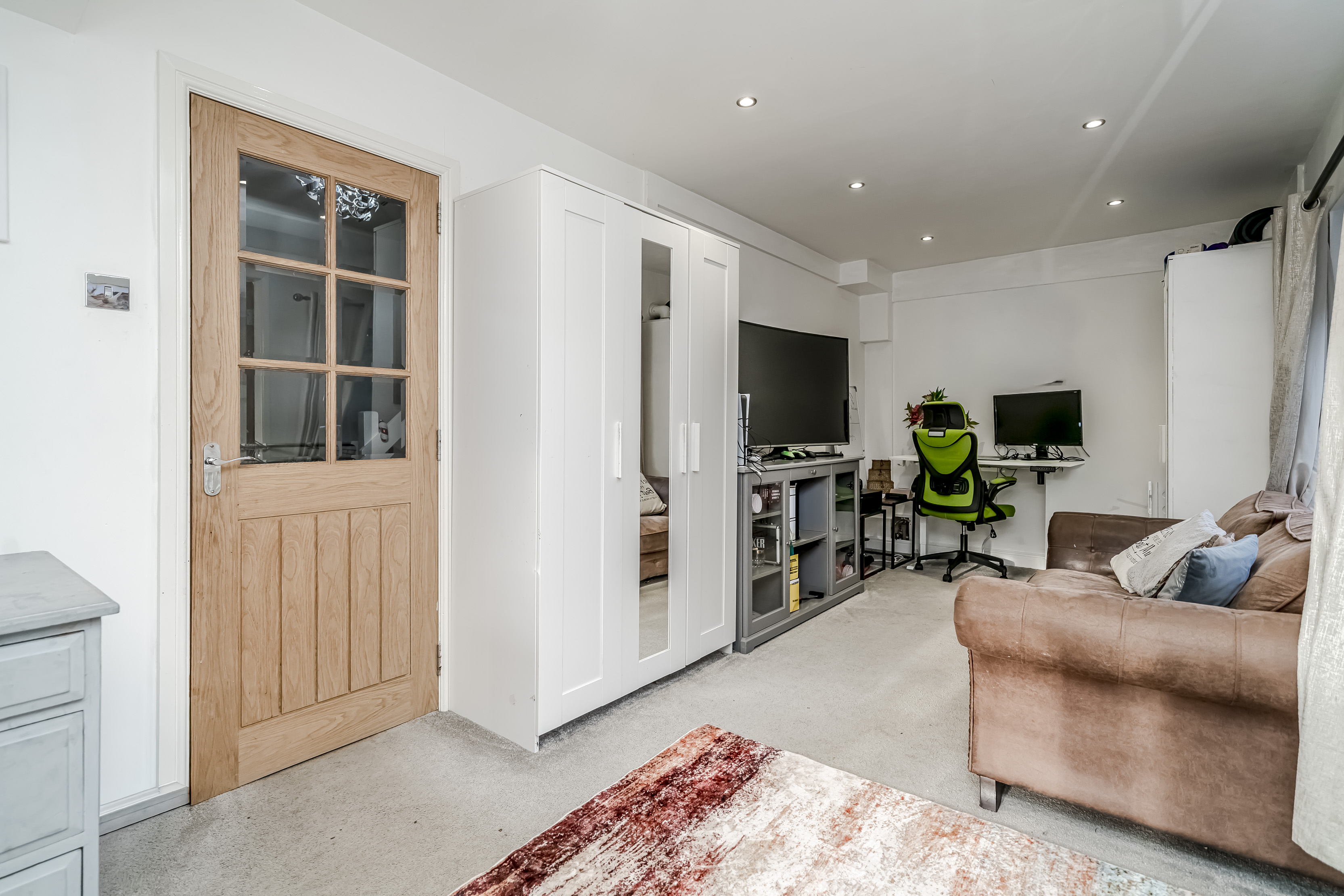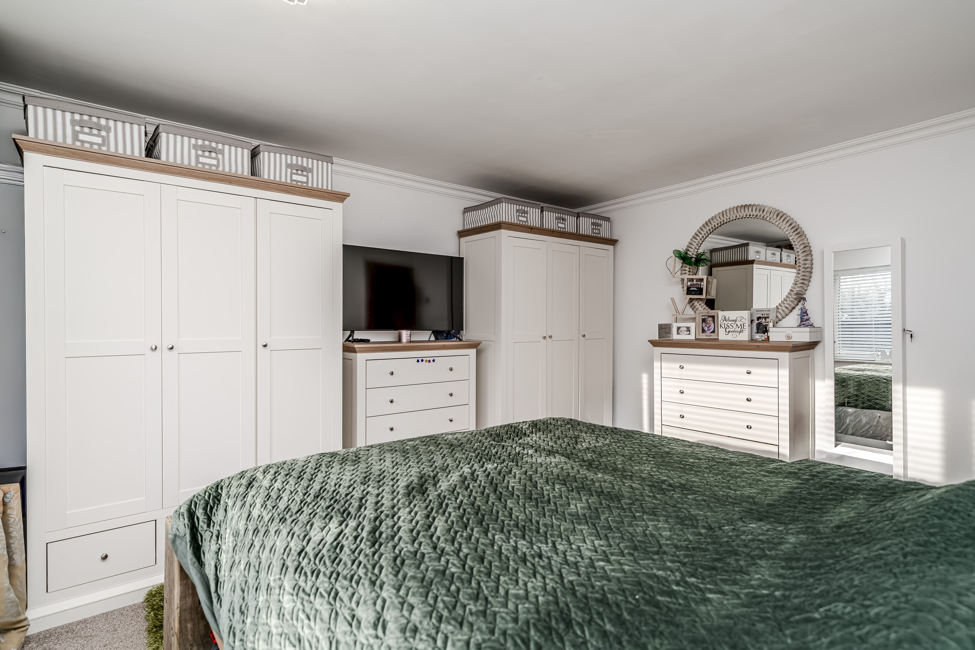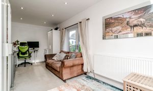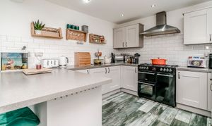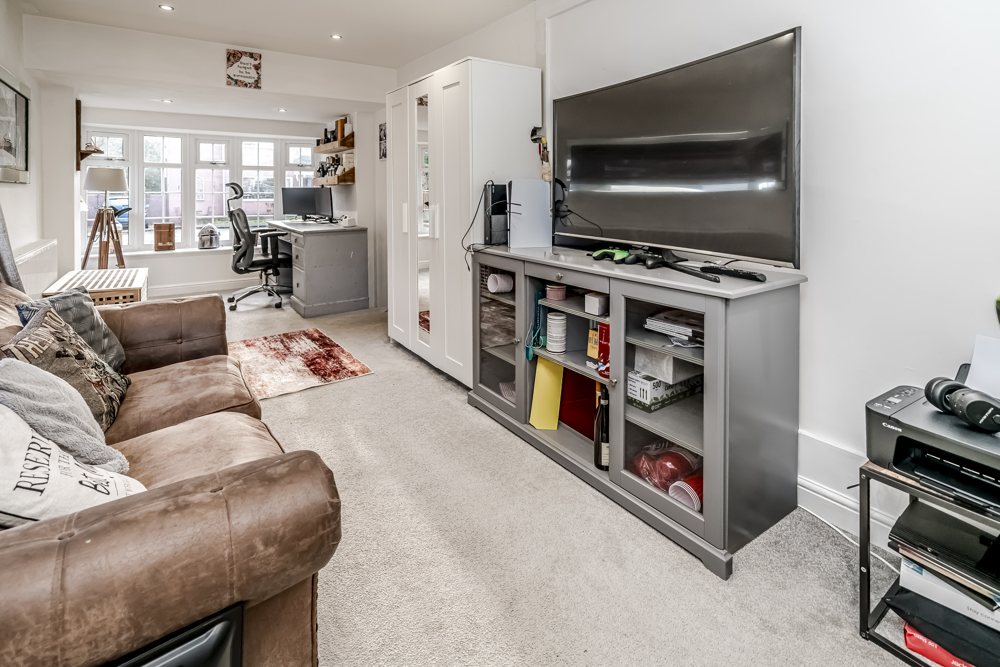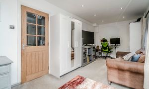 Adjacent to the lounge, the second reception room offers flexible living options, whether you envision it as a snug, playroom or formal sitting area. This room also boasts a lovely bay window and patio doors, ensuring the space is always bright and airy, while the built-in office space is perfect for remote working or homework. At the heart of the home lies the modern kitchen diner, designed in a timeless light-coloured shaker style that brings a fresh, contemporary feel. The kitchen is thoughtfully arranged with a breakfast bar for casual meals or morning coffee, and there’s ample space for a large dining table, making family mealtimes and entertaining a true pleasure.