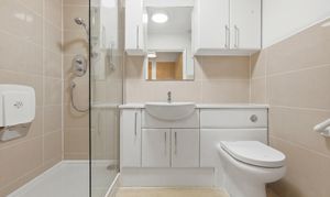 Refitted with walk in shower, fitted basin with cupboards, w.c.