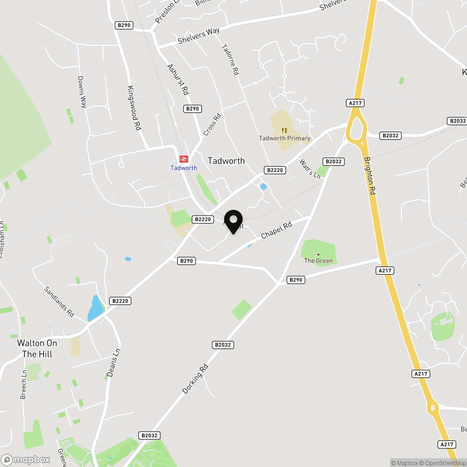 Tadworth railway station is approximately 0.3 miles away and provides regular services into London and across Surrey. Additional nearby stations include Kingswood and Tattenham Corner.