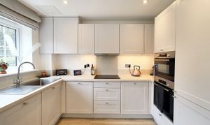 Located within the highly desirable Hollyfields development in Hawkenbury, this ground floor apartment is ideal for professionals or couples seeking town access with a countryside feel. The sleek kitchen comes fully equipped with integrated appliances including a dishwasher, fridge freezer, oven, grill, and hob. The bright living area opens via double glazed French doors to the private south-facing patio – perfect for morning coffee or evening dining.