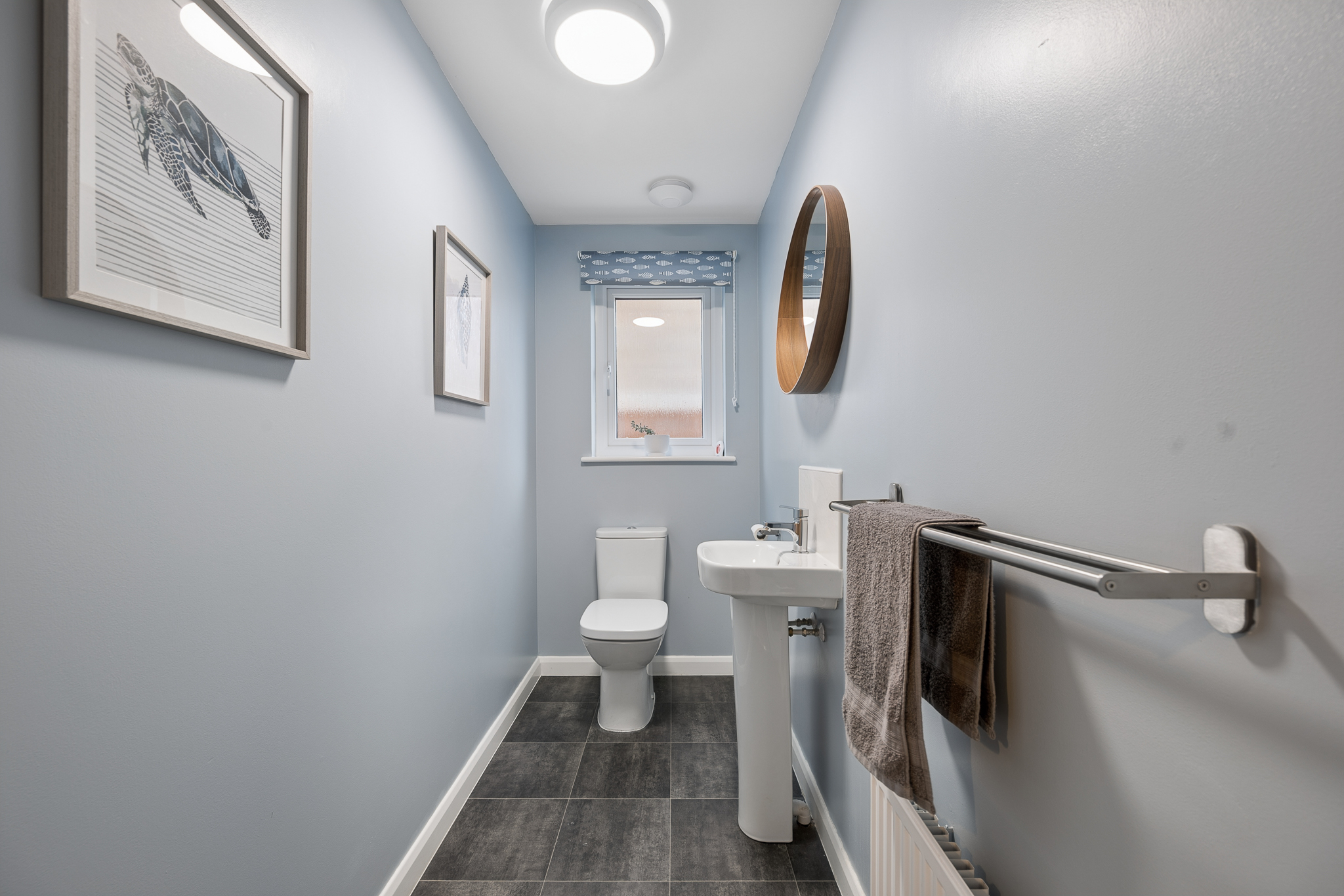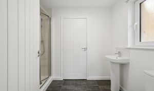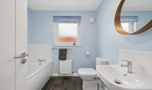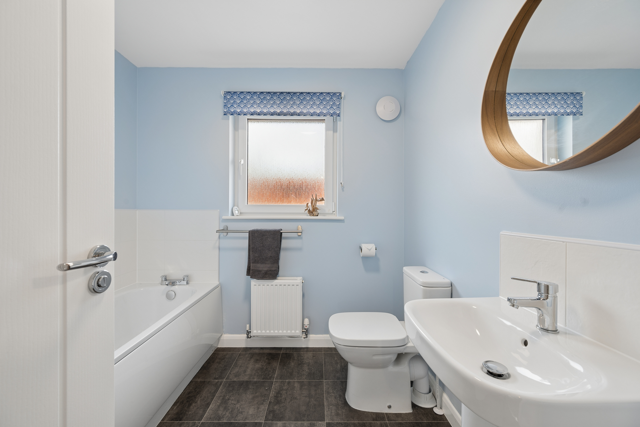 Completing the upper floor is the family bathroom, finished with a modern three-piece suite including bath, creating a calm and functional space for daily routines.