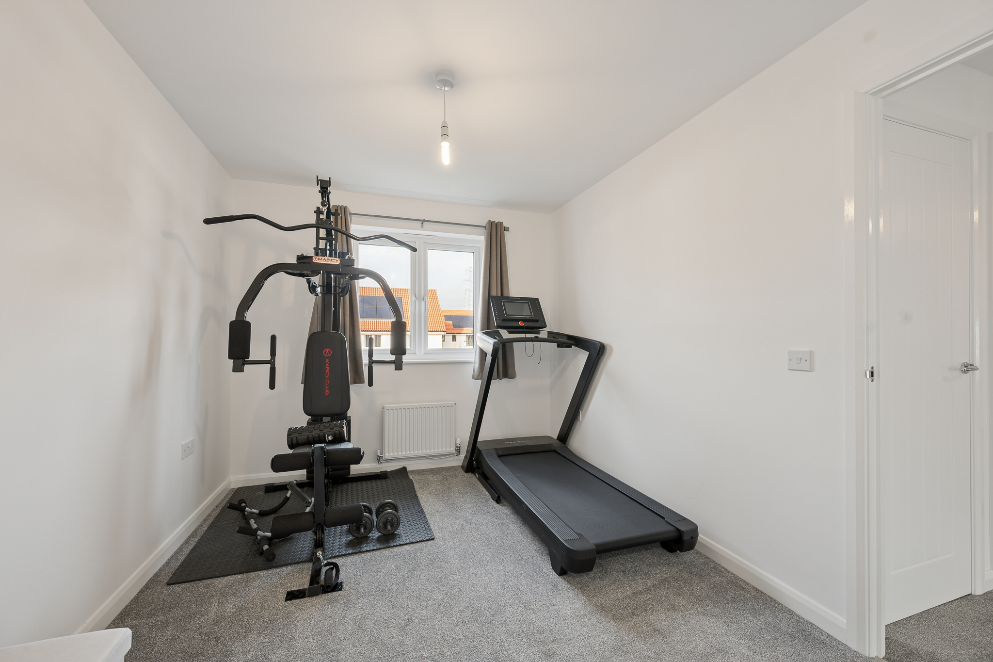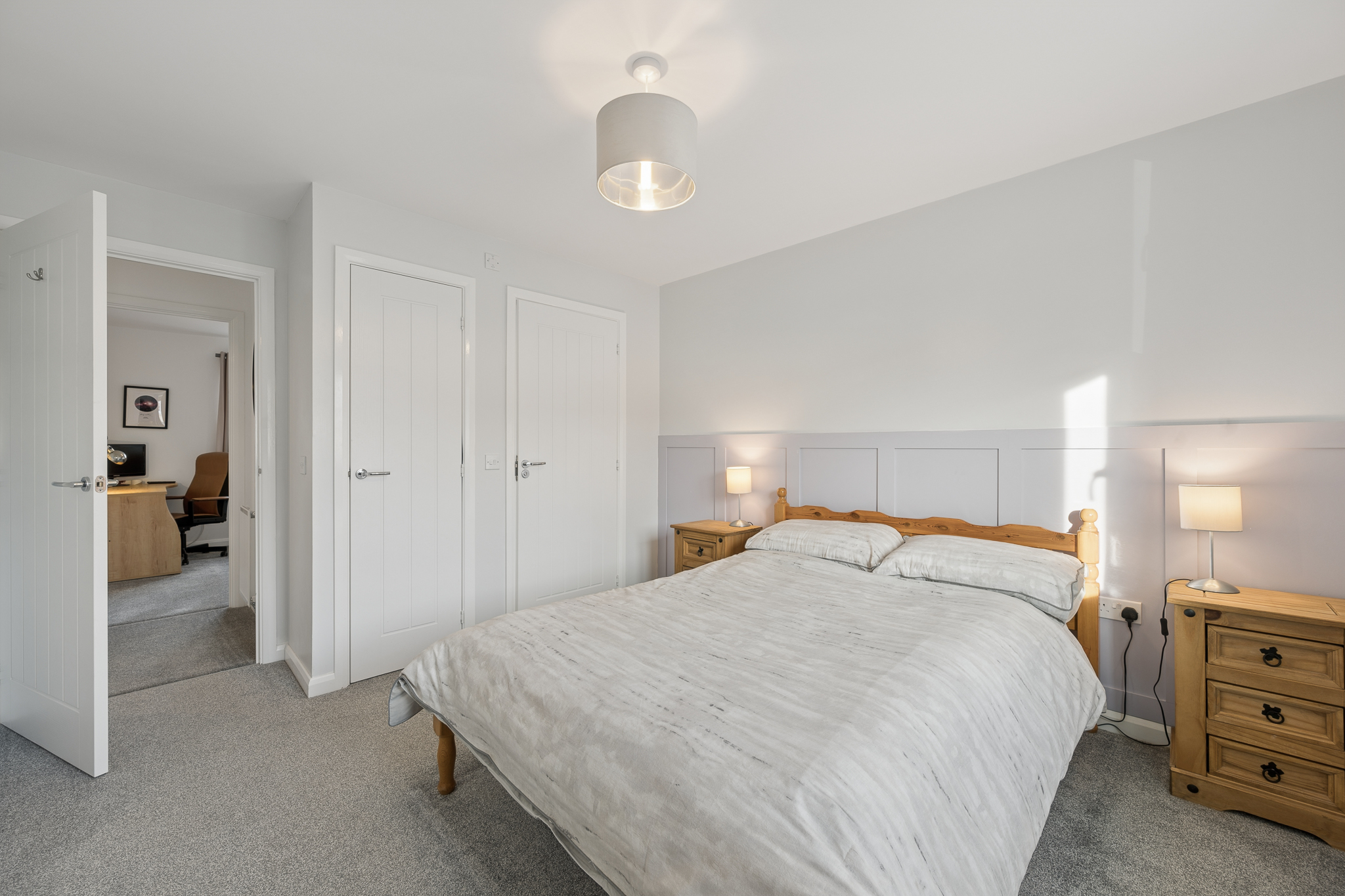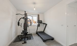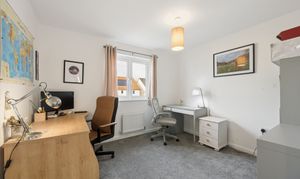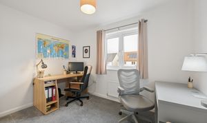 Bedroom Four, located to the rear right of the property, enjoys pleasant views over the garden and is currently set up as a home office, although it comfortably functions as another double bedroom depending on the needs of the new owners.