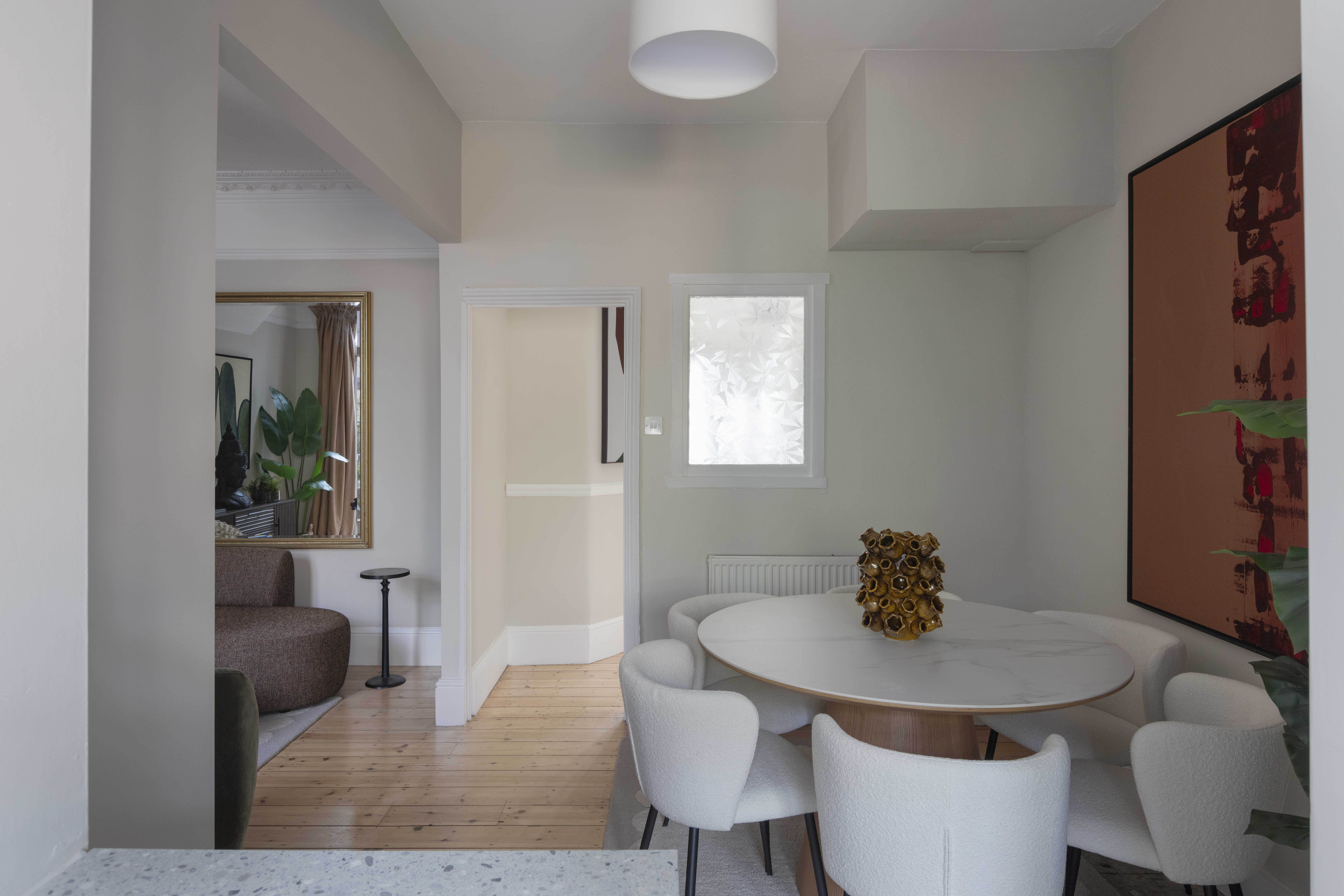 The property has been meticulously refurbished throughout. Care was taken to preserve and restore beautiful period features such as detailed ceiling coving, fireplaces and floorboards, while a modern kitchen and bathroom were fitted for contemporary comfort. As well as a full rewire, a new heating system and boiler were installed, and the ground floor has been reconfigured for a lovely flow. Every room has been decorated in a calming neutral palette with white woodwork, resulting in a refined, cohesive look.