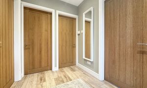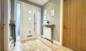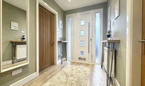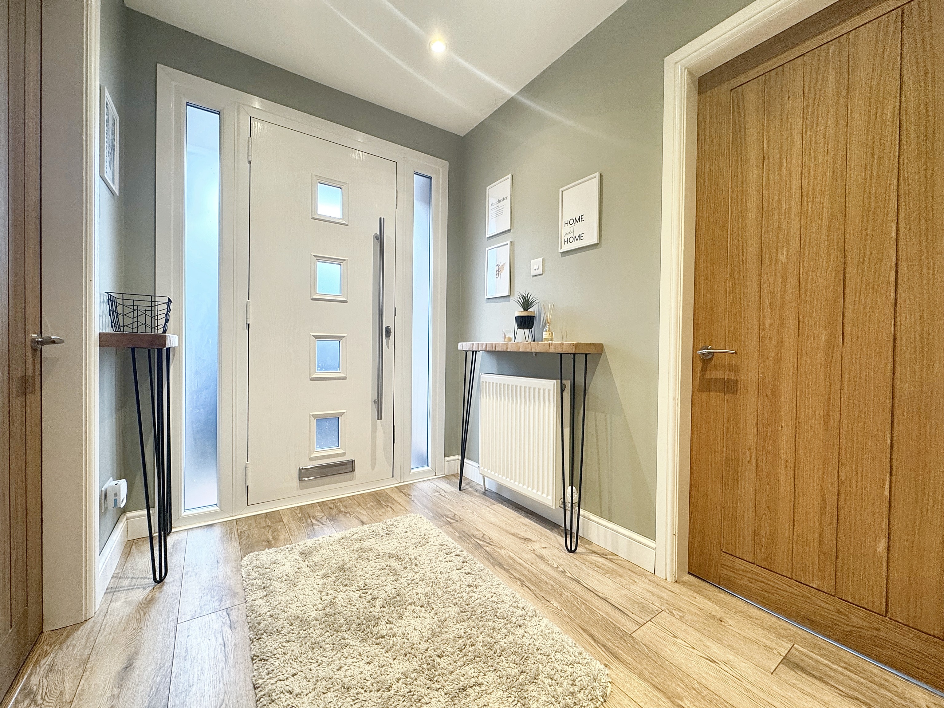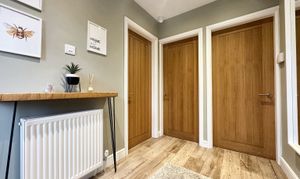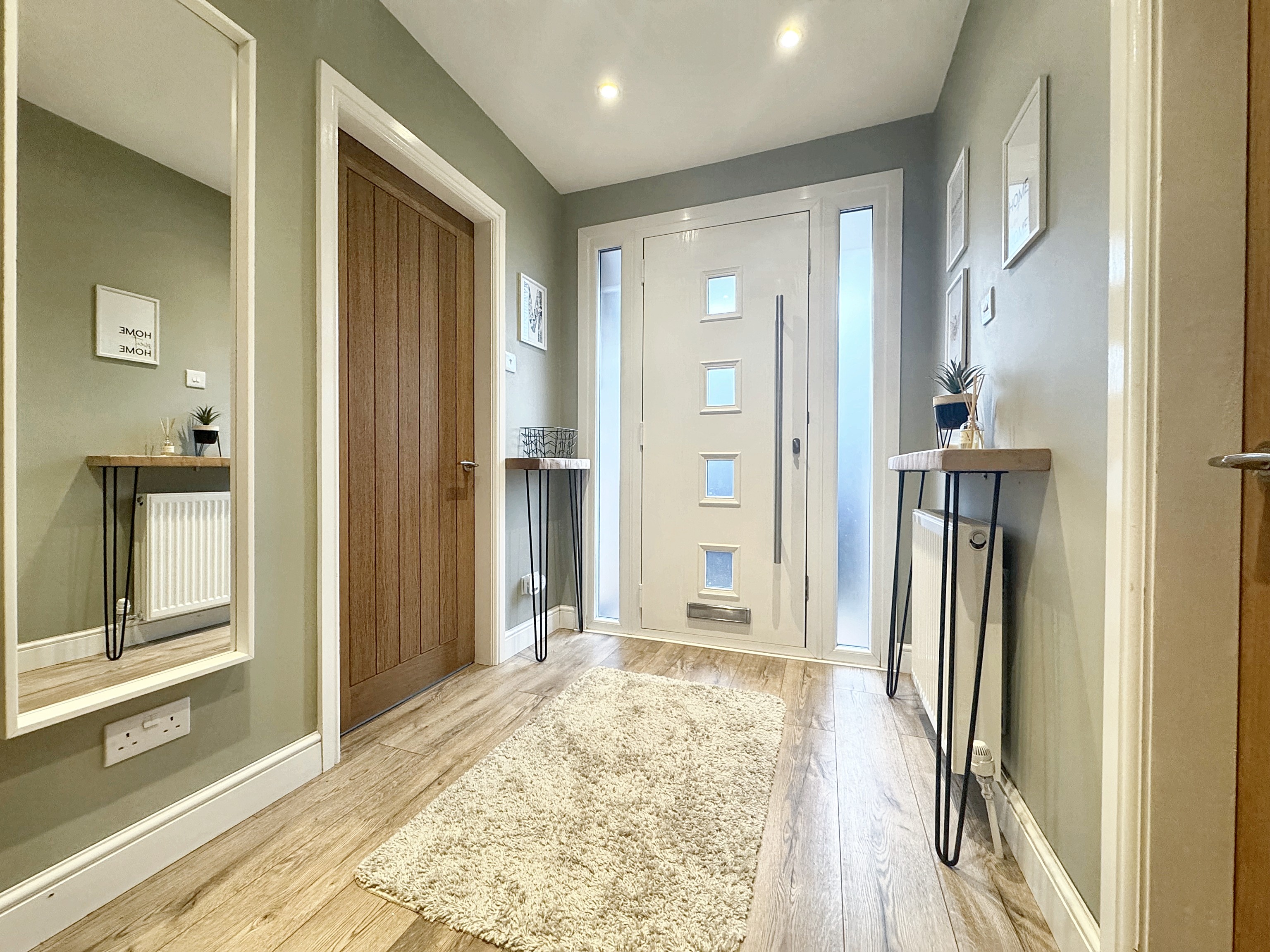 Front door to the side elevation. Welcoming bright hallway with internal doors through to: