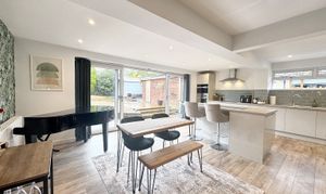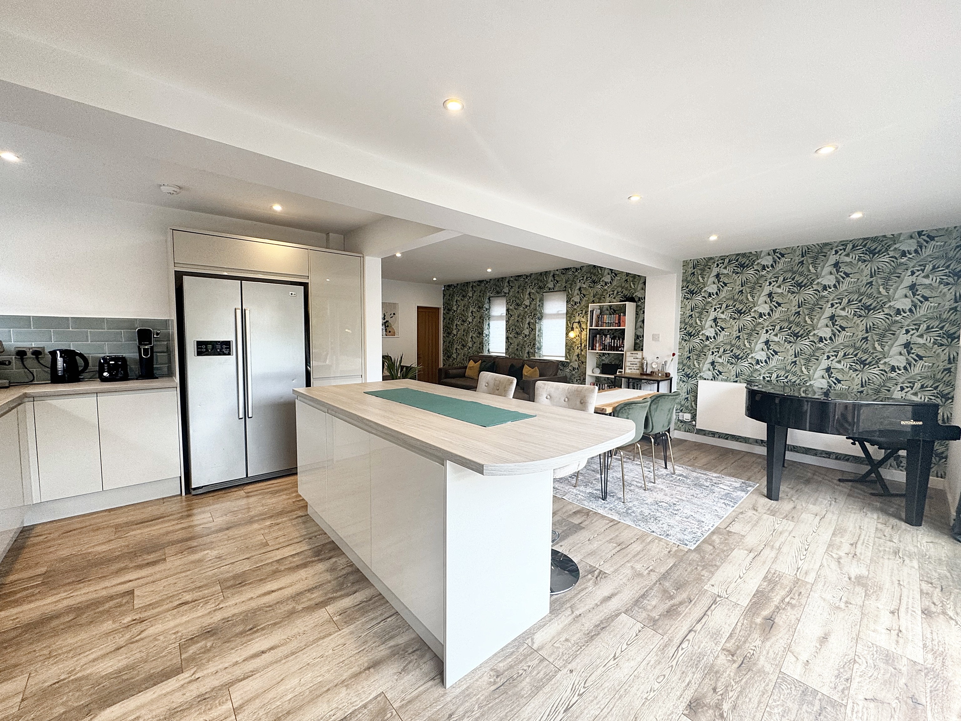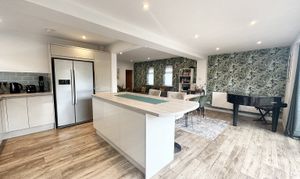 Dual window aspect to the side elevation. L-shape open plan lounge/kitchen/diner space perfect for guest and family entertaining.