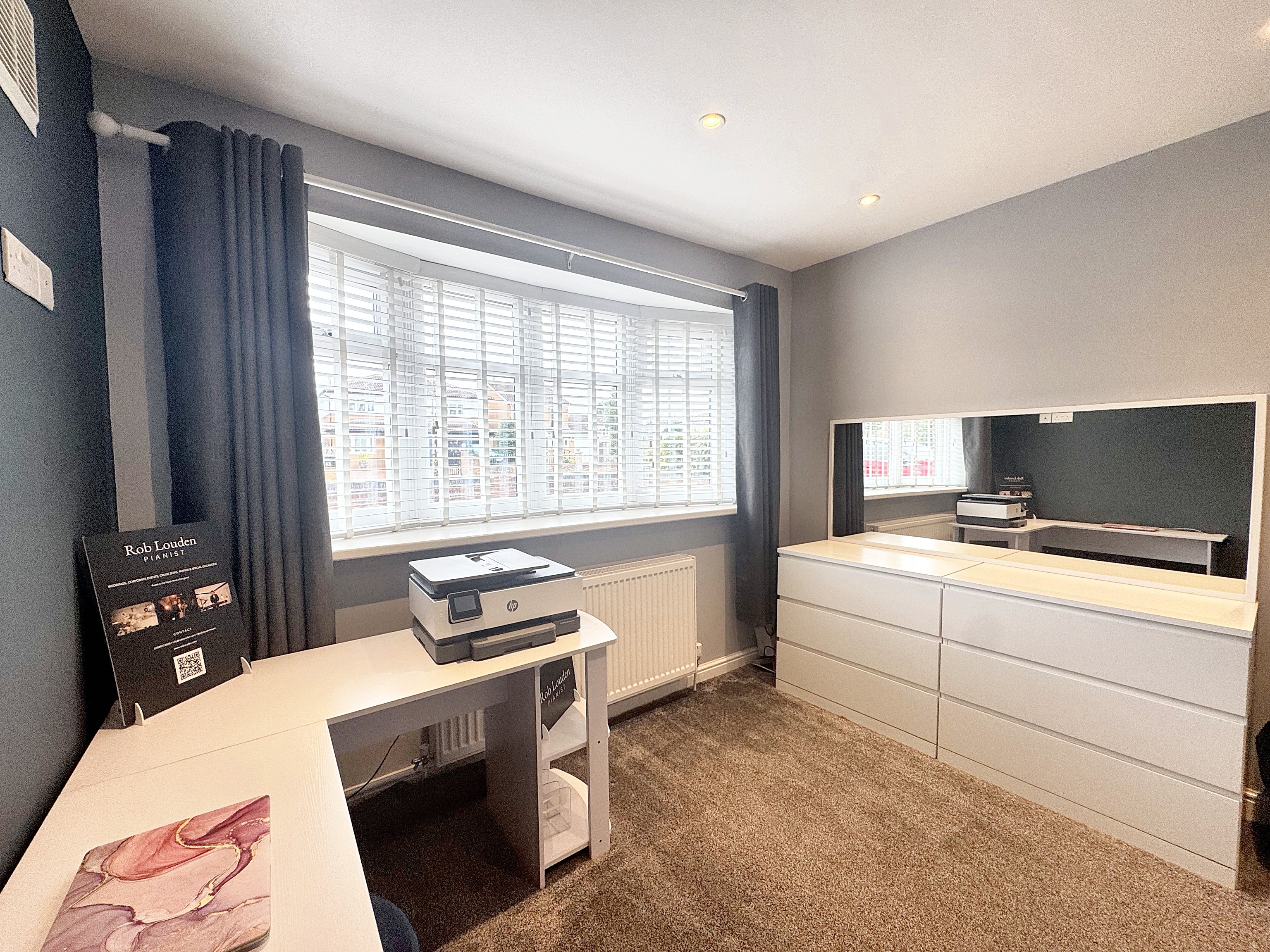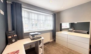 Window to the front elevation. Currently used as a dressing room/home office but adequate size for a double bedroom.