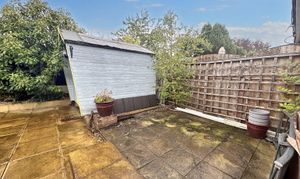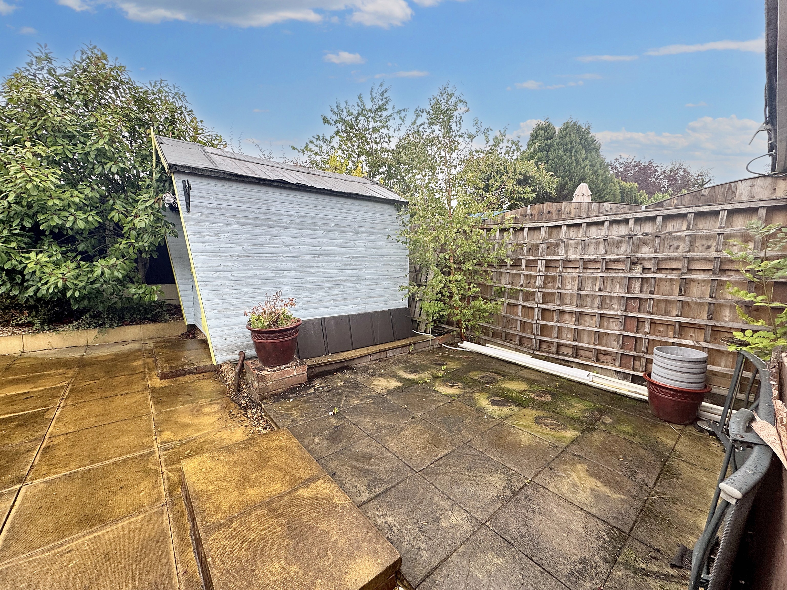 A low maintenance, private rear garden, perfect for outdoor and summer entertaining. A Wendy house style shed.