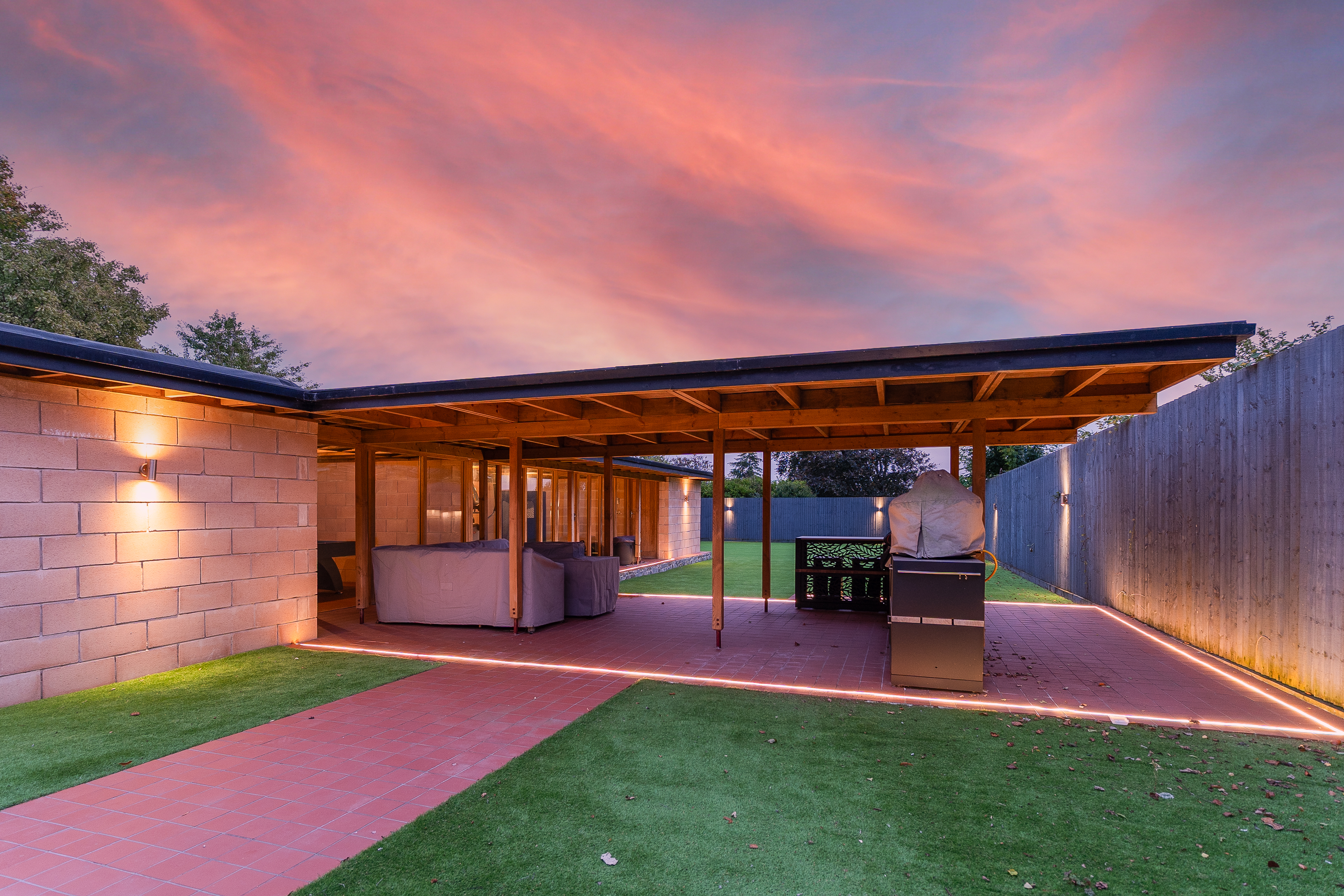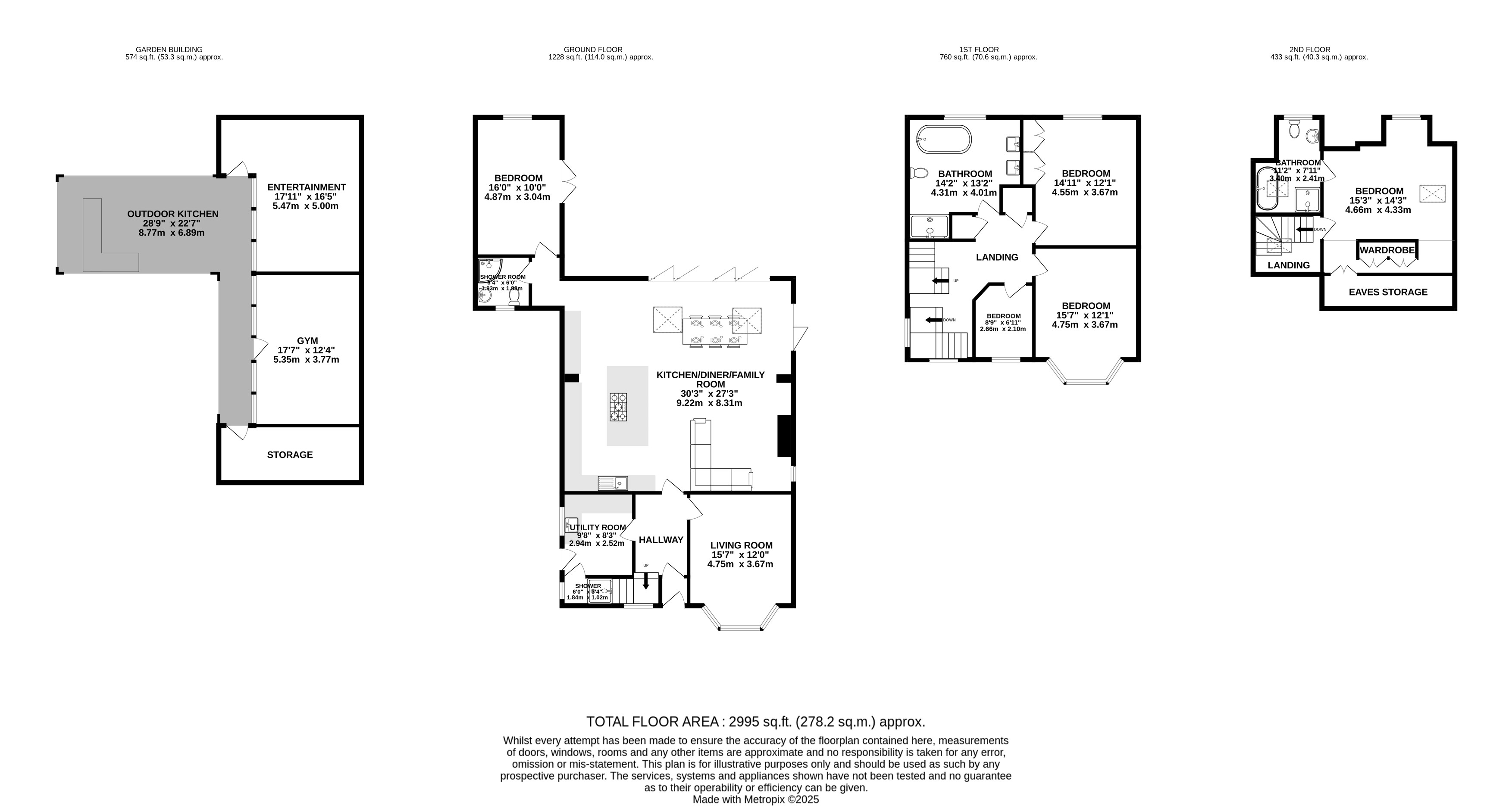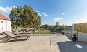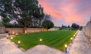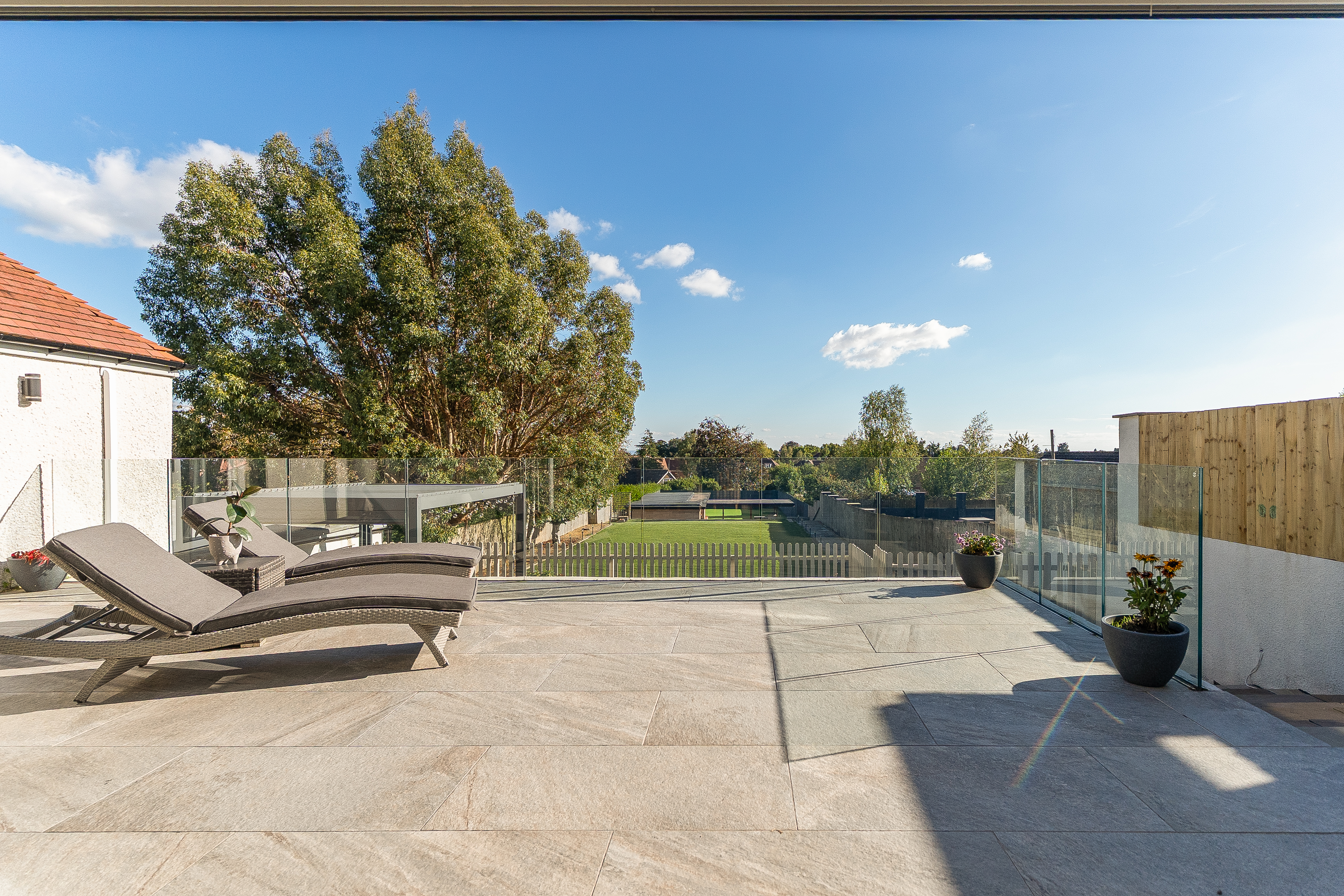 Externally, the property continues to impress. To the front, secure electric gates open onto a sweeping driveway with parking for several vehicles. The rear garden is remarkable in both scale and design, arranged across multiple tiers. A raised patio with glass balustrade extends seamlessly from the main living space, while landscaped lawns and multiple seating terraces offer versatility and privacy. At the far end, a bespoke garden pavilion creates the ultimate leisure and entertainment destination, complete with an expansive entertaining room, home gym, storage and a covered outdoor kitchen – ideal for hosting gatherings in style.