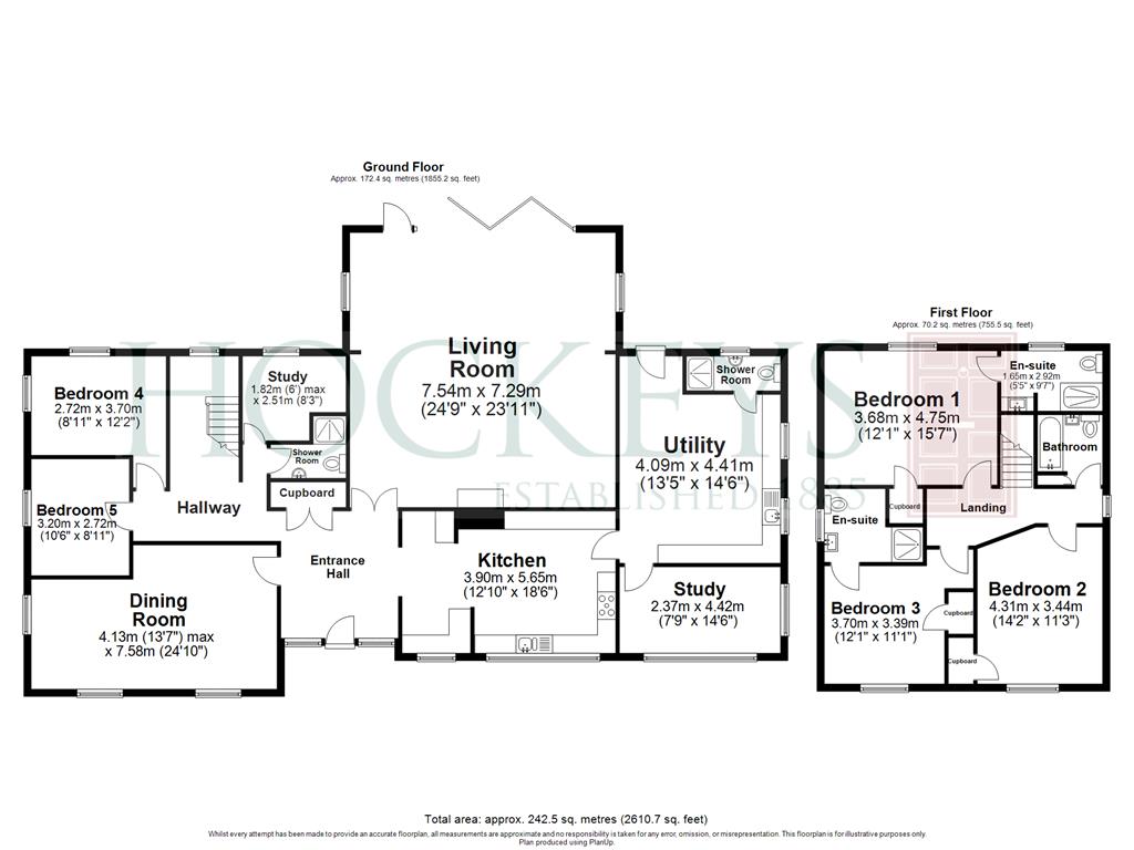 Moving from the kitchen, you’ll find an expansive dining room, ideal for entertaining family and friends on any scale, while an additional study provides yet more versatility for work or hobbies. Moving further through the property, the layout unfolds into two well-proportioned ground-floor bedrooms, perfectly suited for guests, extended family, or multi-generational living. These rooms are served by a sleek, modern shower room, ensuring comfort and convenience. Completing the ground floor is a truly impressive living room, a large, welcoming space where natural light pours in, creating the perfect setting for relaxing evenings or lively gatherings.