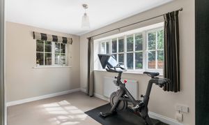 As you step inside, you are greeted by a generous entrance hall that creates an immediate sense of light and openness. To your right, a stunning modern kitchen becomes the heart of the home, thoughtfully designed to combine practicality with contemporary style. This flows effortlessly into a spacious and highly functional utility room, making day-to-day living a breeze. Adjacent to the kitchen, a bright study offers the ideal spot for home working, quiet reading, or, in its current setup, as an exercise room.