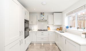 You are welcomed into a spacious entrance hall that sets the tone for the quality and attention to detail found throughout the property. The ground floor enjoys a fabulous modern layout, centred around the impressive open-plan kitchen and dining area. Elegantly designed, the kitchen features a complete range of integrated appliances and stunning quartz worktops, creating a superb space for cooking, dining and socialising. The generously sized living room is bathed in natural light, offering a comfortable and inviting setting for everyday family life. A ground-floor W/C adds further practicality.