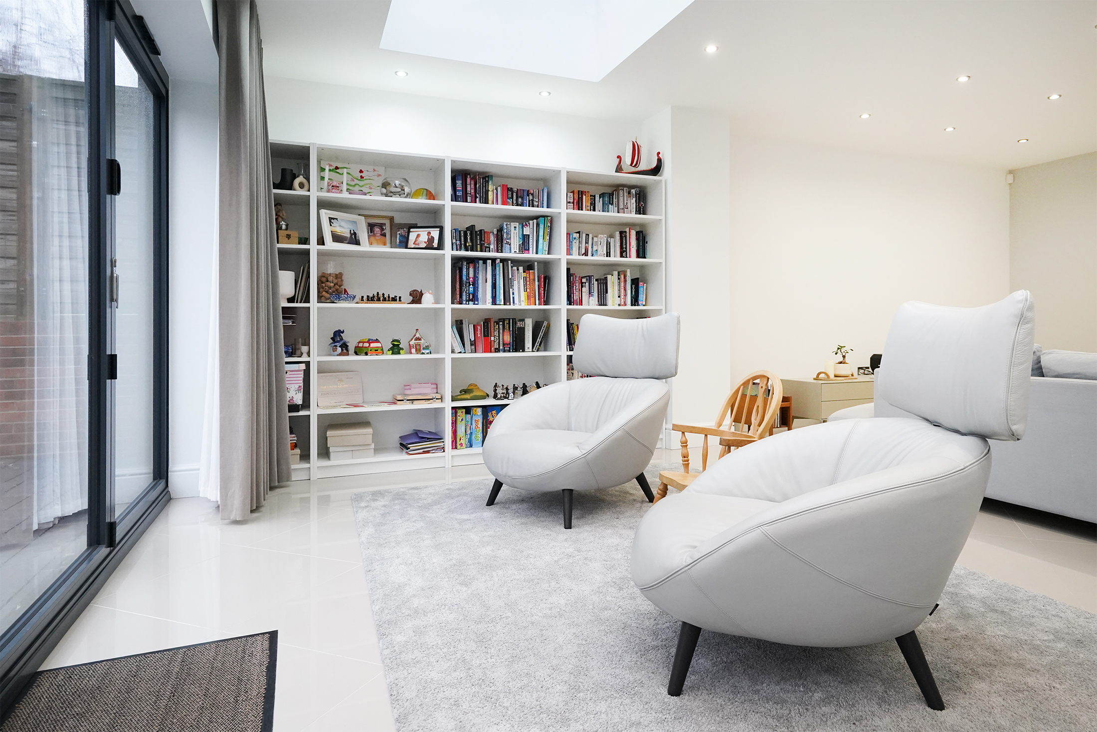 The attention to detail and quality of finish is clear as soon as you enter the welcoming hallway. Porcelain tiled flooring and a bespoke oak and glazed staircase set the tone for the remainder of the home. A cosy lounge and study, situated off the hallway, provide additional reception space, so there’s somewhere for the whole family. The open-plan kitchen/living space is undoubtedly the heart of the home and offers the ideal space for entertaining. The Karl Benz kitchen is finished with quartz worktops and incorporates a full range of integrated appliances. This space is flooded with natural light courtesy of two bi-fold doors paired with two lantern skylight windows and provides ample room for a formal dining table and further seating. A convenient utility room is located just off the kitchen, which in turn allows access to the garage. You have underfloor heating throughout the ground floor with individual heating controls for each room.