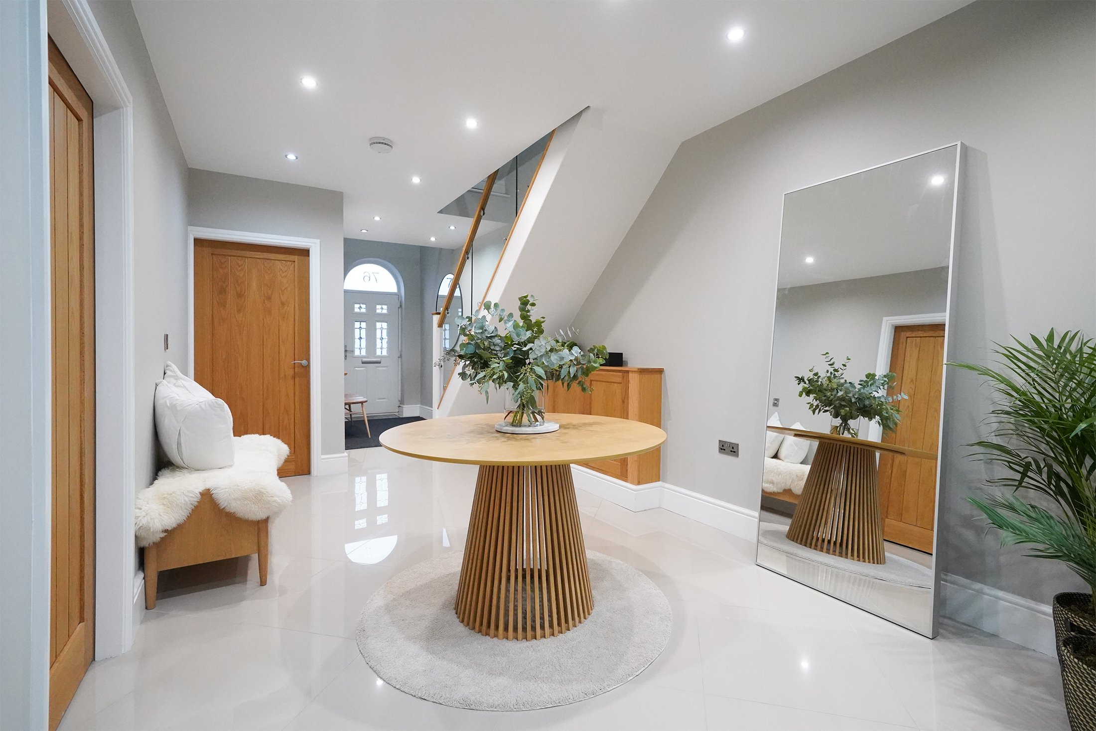 - Hallway With WC, Study & Bespoke Oak Staircase With Glass Balustrade