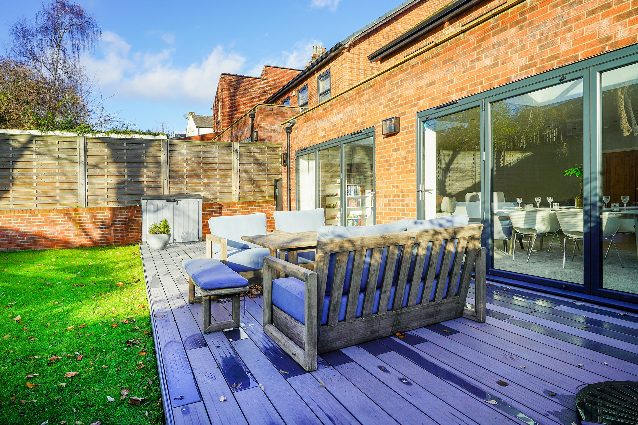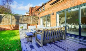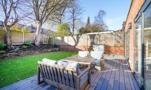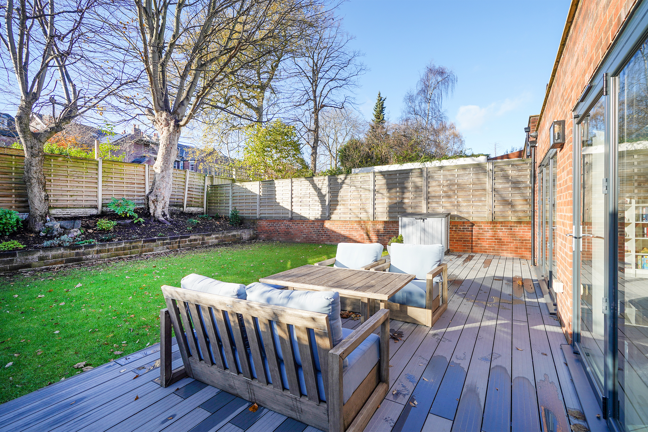 To the rear is an enclosed landscaped garden, complete with a composite decked terrace, lawn and mature trees providing privacy. The property also benefits from a single integral garage alongside a paved driveway that can accommodate multiple vehicles, providing convenience for residents and guests.