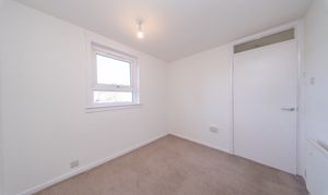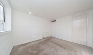 3.160m x 3.547m (10’04” x 11’07”) This well-proportioned double room is positioned to the rear of the property, finished with grey carpeted flooring and white wallpapered walls, creating a bright and neutral space. The window provides natural light, while a built-in wardrobe offers convenient storage. Additional features include a radiator, power points and a ceiling light.