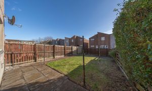 A low-maintenance approach features a paved path leading from the timber access gate directly to the front door. The garden is mainly laid with gravel, providing a neat and practical outdoor space, and is enclosed by wooden fencing.