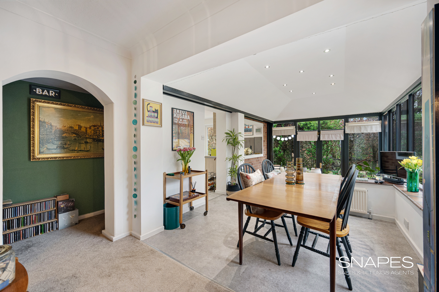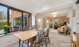 To the rear, the property opens into yet more multi-functional space, this time labelled Dining Room, perfectly positioned for entertaining and enjoying views over the garden. This in turn connects directly to the Kitchen, which is well laid out with ample worktop space and room for informal dining. The kitchen/dining arrangement creates a sociable hub, ideal for modern family life.