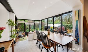 The principal reception room (labelled Living Room) is particularly impressive, with a large Living Room forming the heart of the home. This room offers excellent proportions and natural flow, linking seamlessly through to the Sitting Room, creating a versatile arrangement ideal for both formal entertaining and relaxed family living. Views and access into the garden from the living room paint a picture worth a thousand words - the beautiful private backdrop to the home provide a stunning live picture to enjoy.