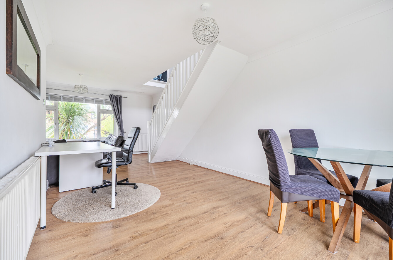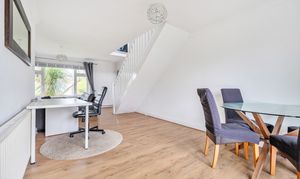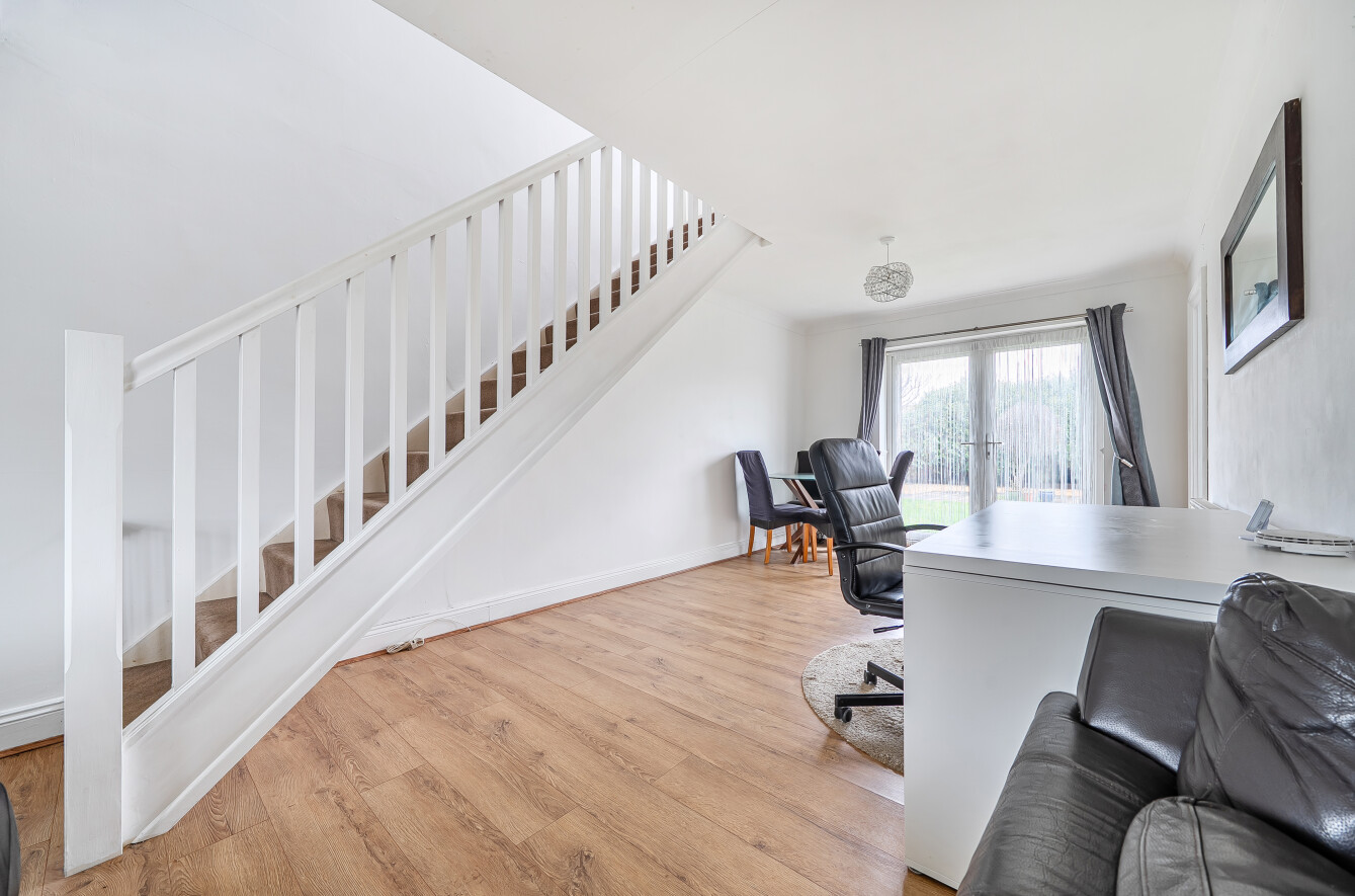 Stairs from the living/dining room lead up to the 1st floor landing with doors to both bedrooms