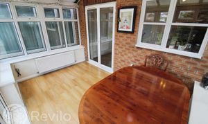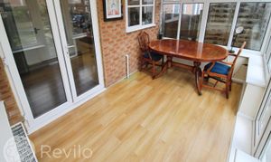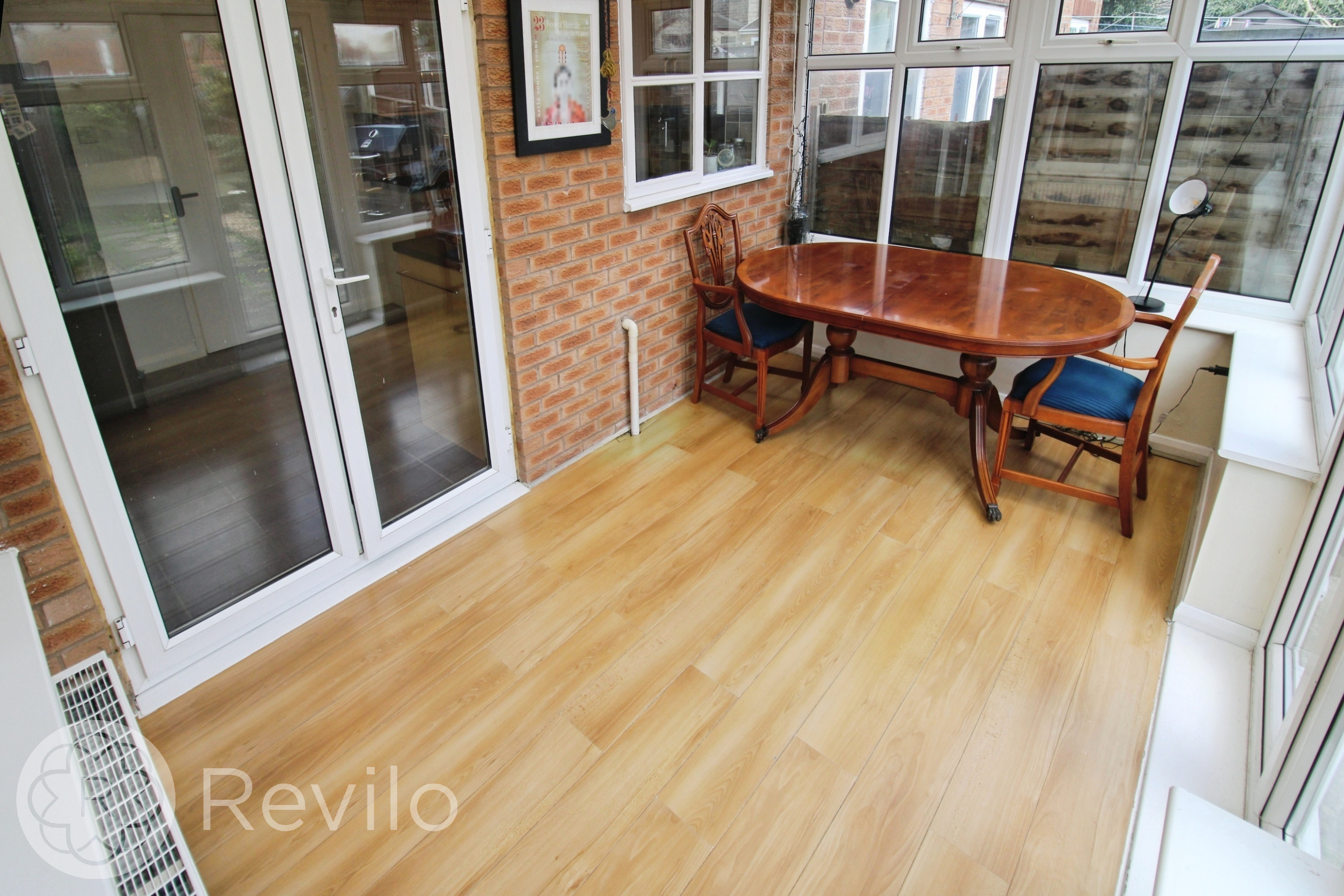 Rear facing double glazed French doors giving access to the private rear garden, radiator, wood effect laminate flooring.