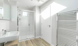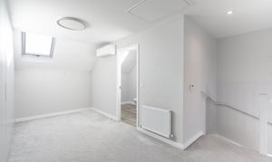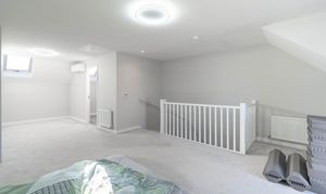 On the first floor, there are two generous double bedrooms and a versatile landing area that has been thoughtfully transformed into a study space with a bespoke fitted workstation. The second floor is dedicated to the luxurious principal bedroom, which boasts a full range of fitted wardrobes and a stylish en suite shower room.