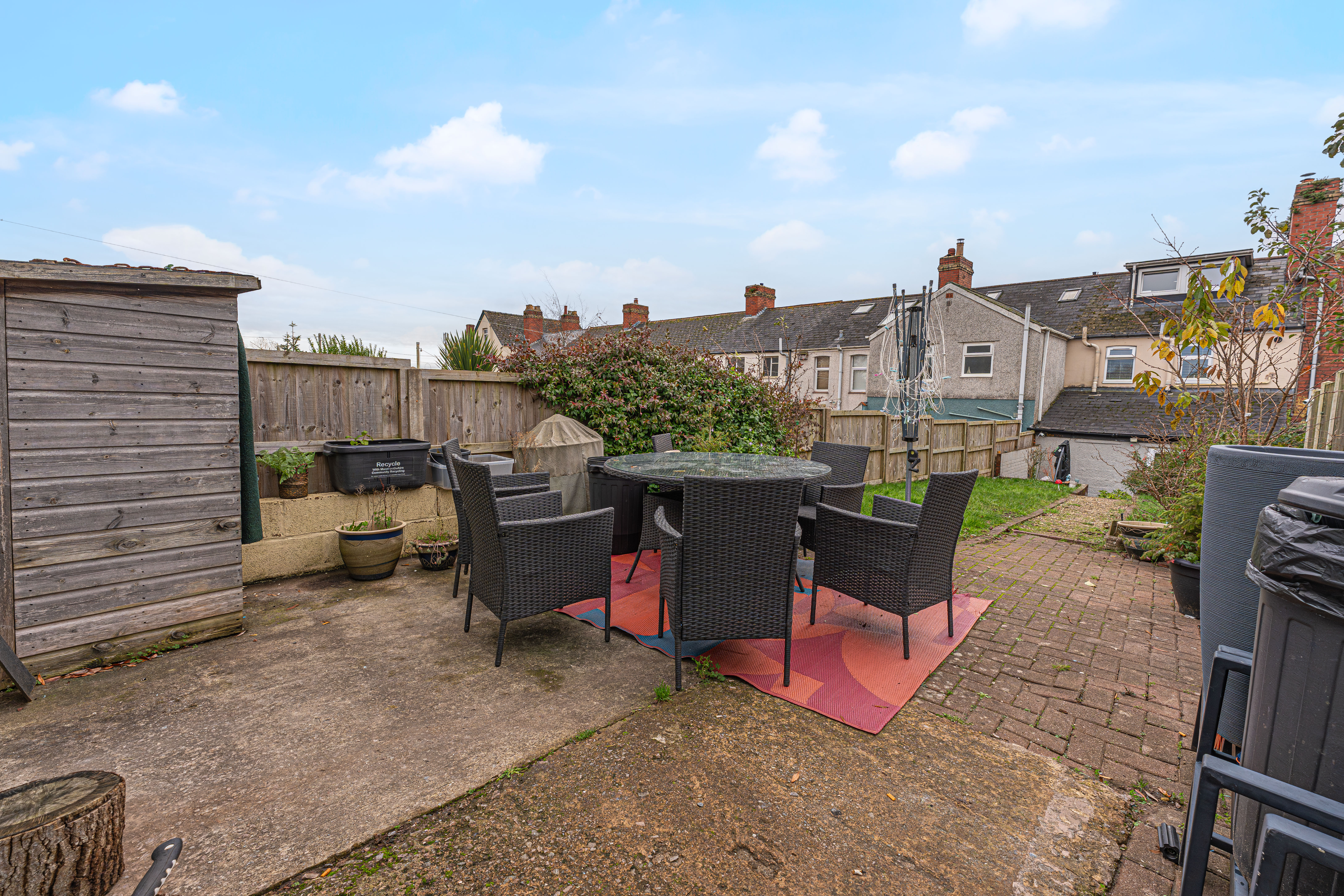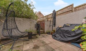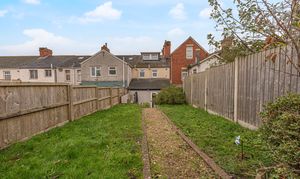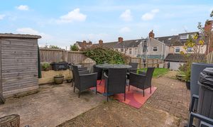 Stepping outside we arrive at the fully enclosed rear garden, which offers a spacious lawn, and multiple seated patio areas, which are perfect for alfresco dining or relaxing in the fresh air. A garden shed provides additional storage, while a gateway provides an alternative entry point at the rear of the property, with convenient access to the neighbouring school - making the school run a thing of the past. Further benefits include off-road parking at the front of the house - a rare advantage in a terraced property - with space to park 1-2 vehicles.