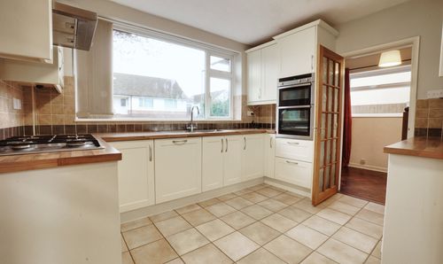 With double glazed window to the front elevation, tiled floor, wall and base units with work surface over, integrated dishwasher, integrated double oven, hob with extractor hood over, one and a half bowl sink and drainer unit, open access leading to dining room.